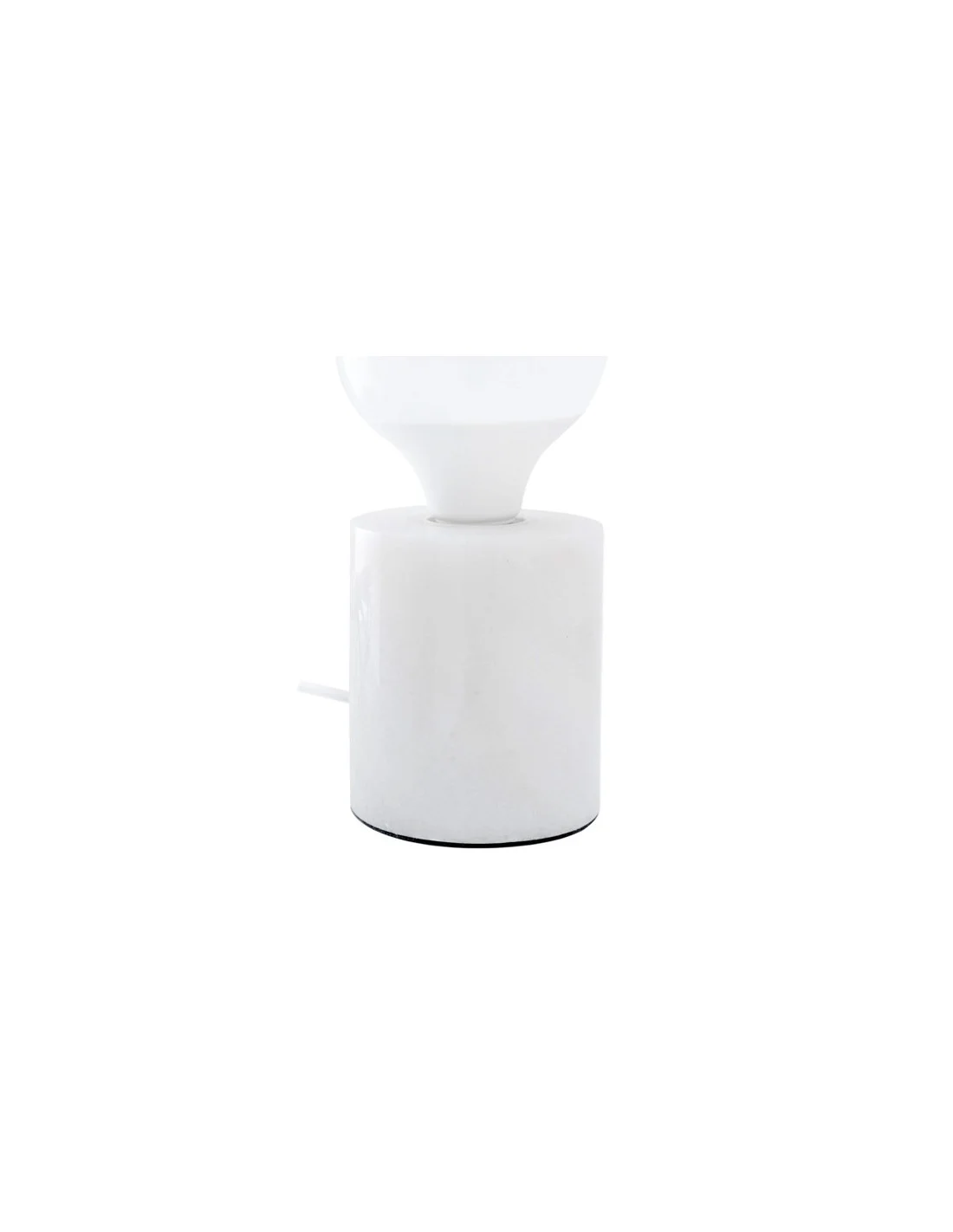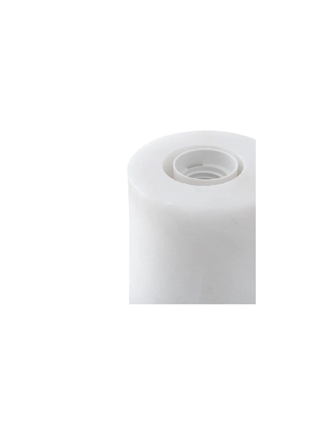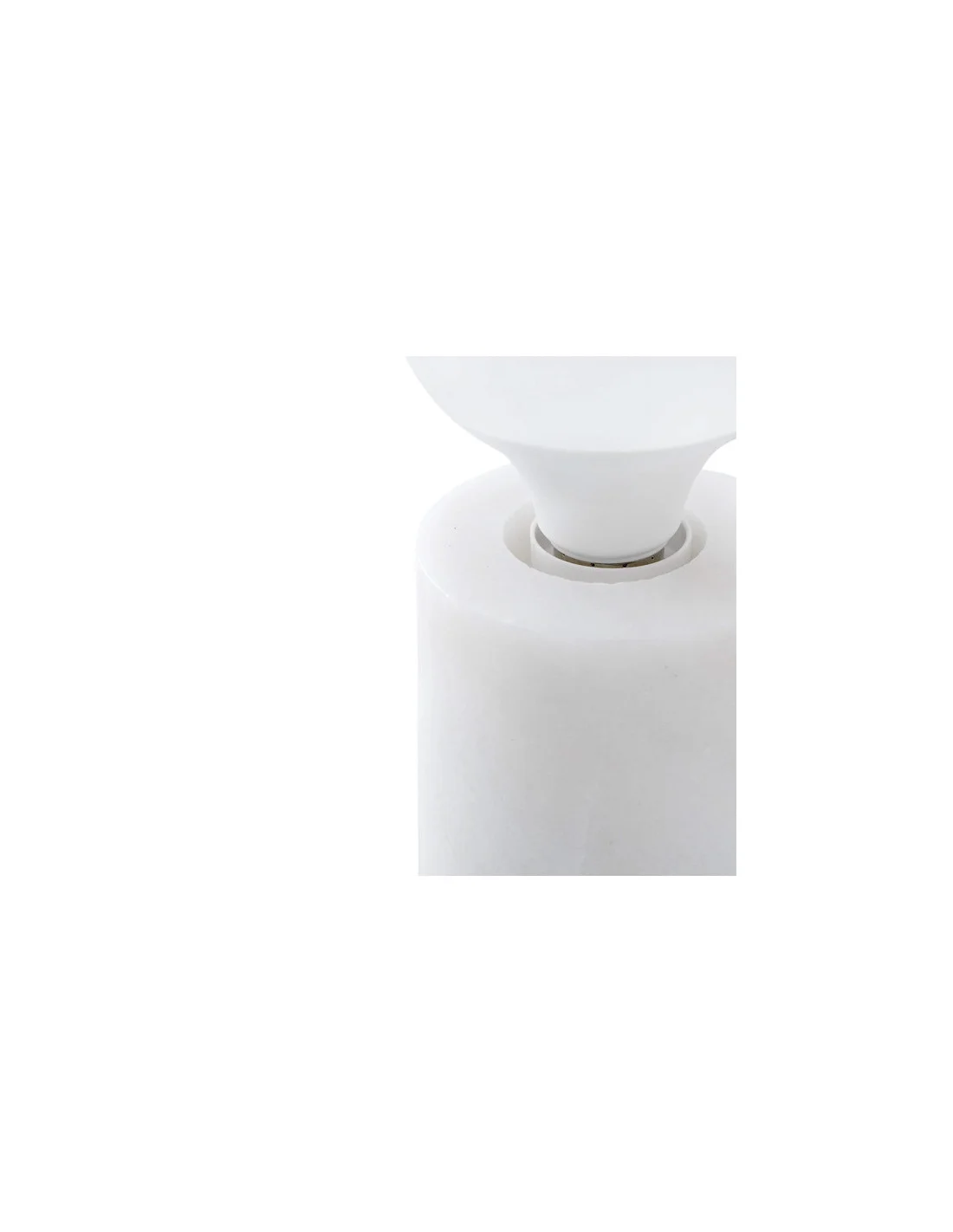 La lámpara de sobremesa ROSER es ideal para aportar un toque moderno y sofisticado a cualquier espacio. Su base cilíndrica, elaborada en mármol blanco, no solo garantiza estabilidad, sino que también añade un aire de distinción gracias a las vetas naturales propias de este material.