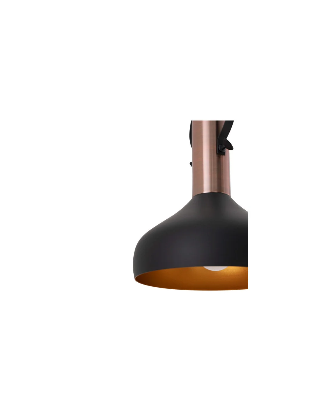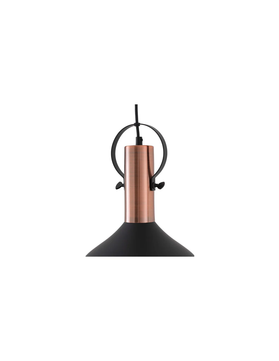 La lámpara de techo AGRES encarna la esencia del estilo industrial con un diseño sobrio y lleno de carácter. Su pantalla metálica combina el acabado negro mate con detalles en cobre, creando un contraste cálido y elegante que aporta personalidad a cualquier estancia.