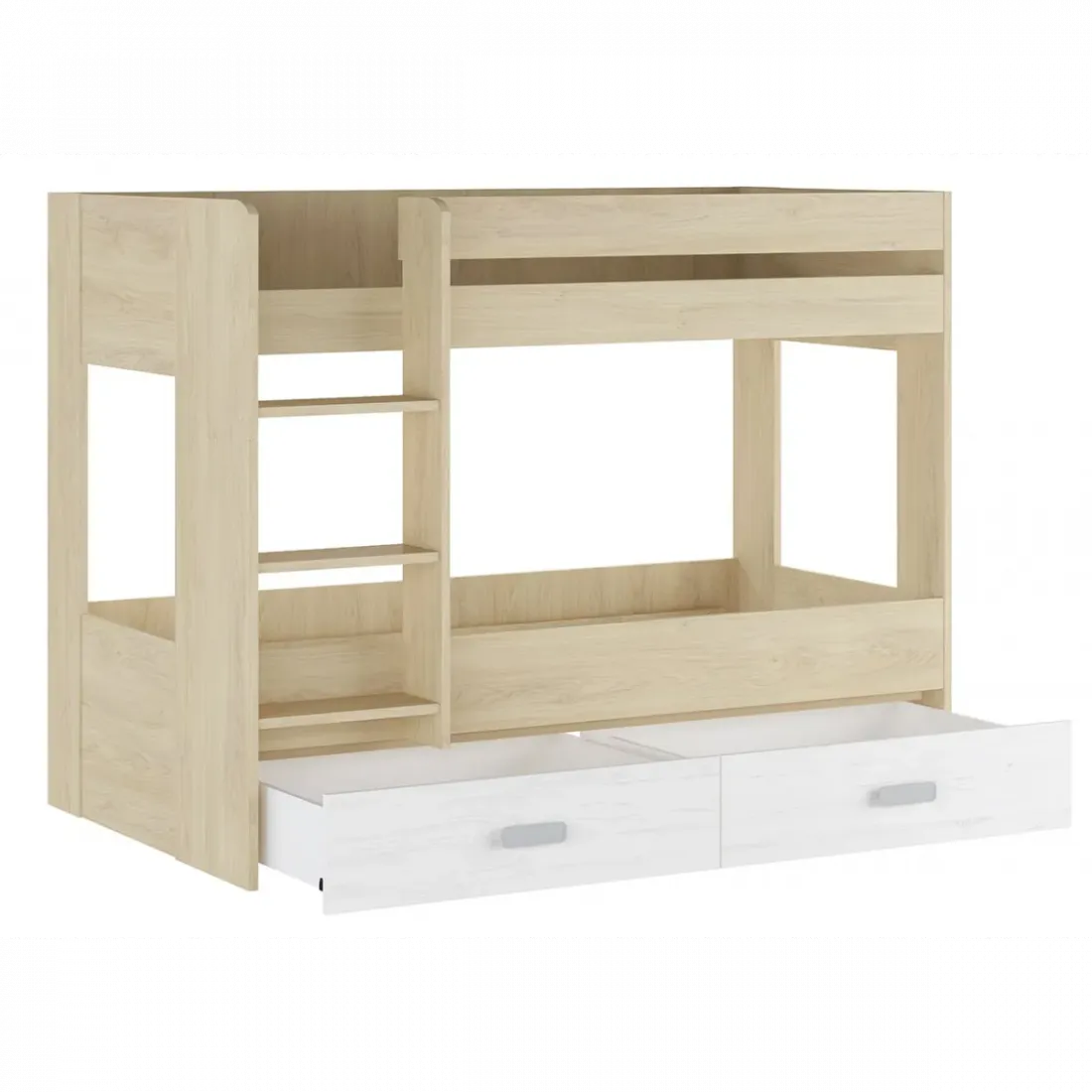 Con dos cajones bajo la cama inferior, añade un espacio adicional de almacenamiento perfecto para mantener la ropa de cama, los juguetes o cualquier otro objeto siempre ordenados. Está fabricado con melamina un material resistente que asegura la durabilidad de la litera juvenil.