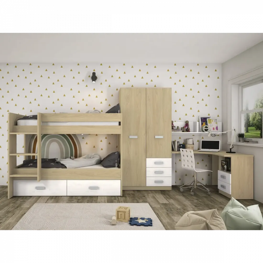 ¿Hay complementos? Si, la seire Donald de juveniles combina con este modelo de litera.