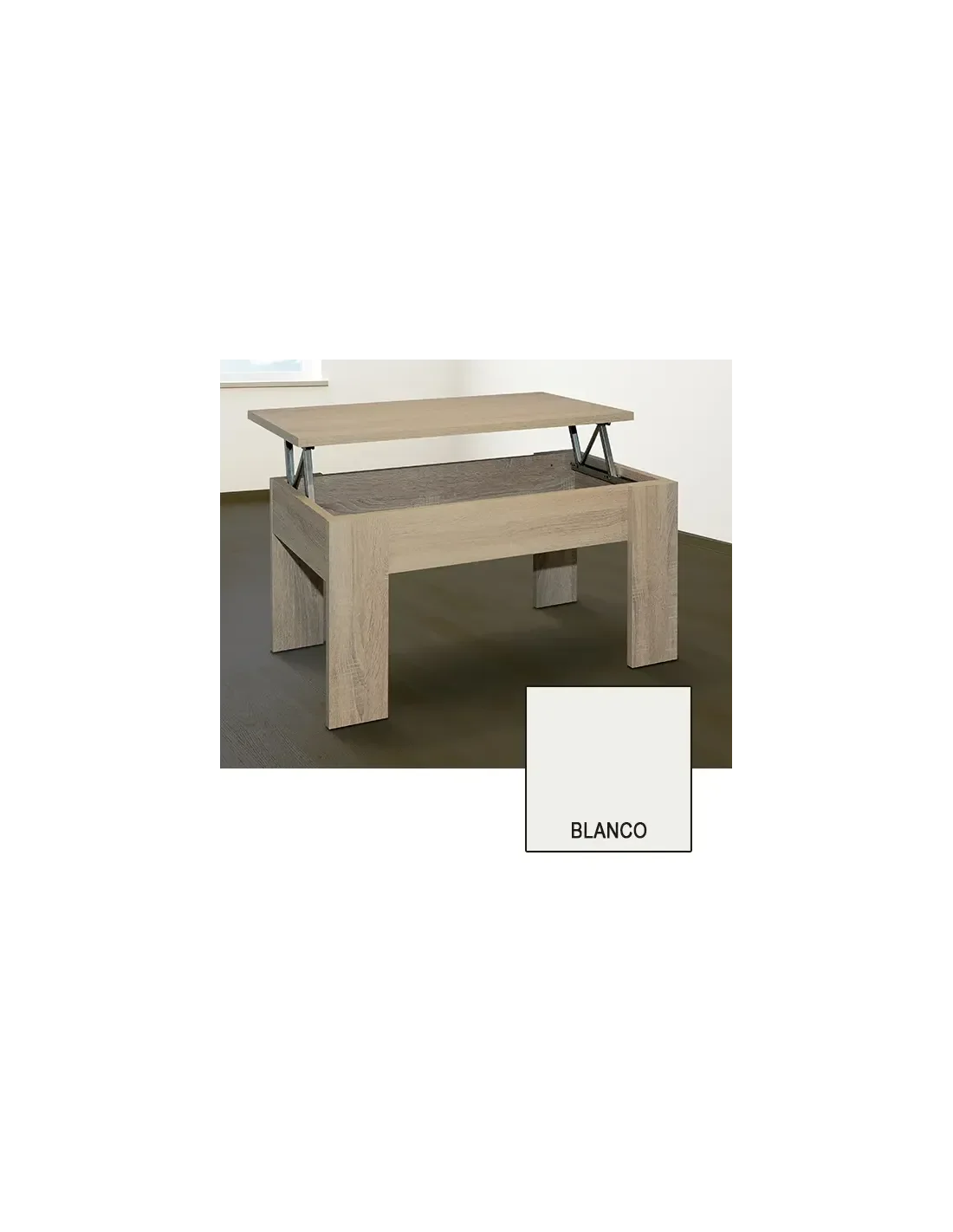 La mesa de centro elevable modelo Lara destaca por su bajo precio. Es un modelo básico, elegante y muy funcional, gracias al tablero elevable y al hueco que se deja en su interior permitiendo almacenaje. Fabricada en tableros melamínicos de alta calidad.