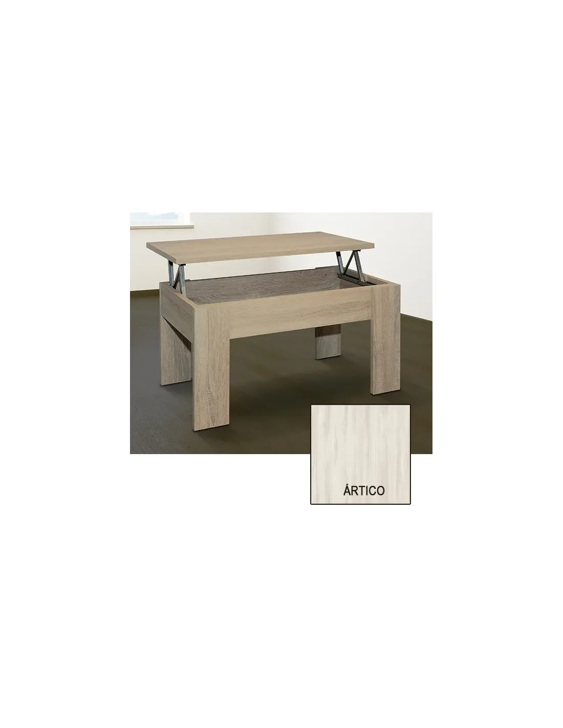 La mesa de centro elevable modelo Gala destaca por su bajo precio. Es un modelo básico, elegante y muy funcional, gracias al tablero elevable y al hueco que se deja en su interior permitiendo almacenaje. Fabricada en tableros melamínicos de alta calidad.