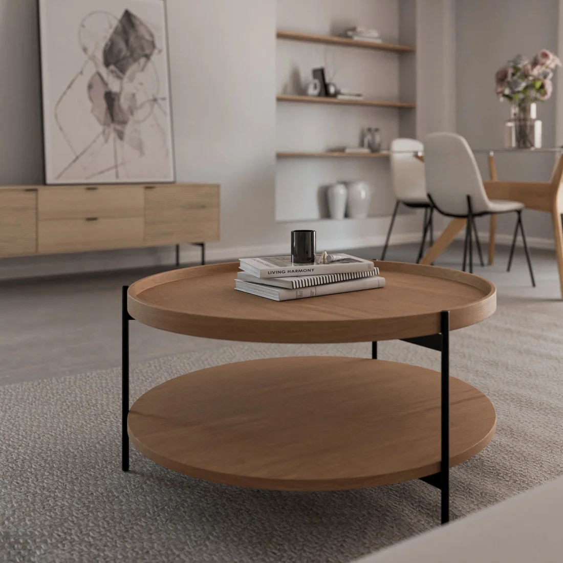 La mesa auxiliar ARJUN destaca por su esencia natural y carácter artesanal, elaborada en madera de mango con un acabado que realza las vetas y texturas propias del material.