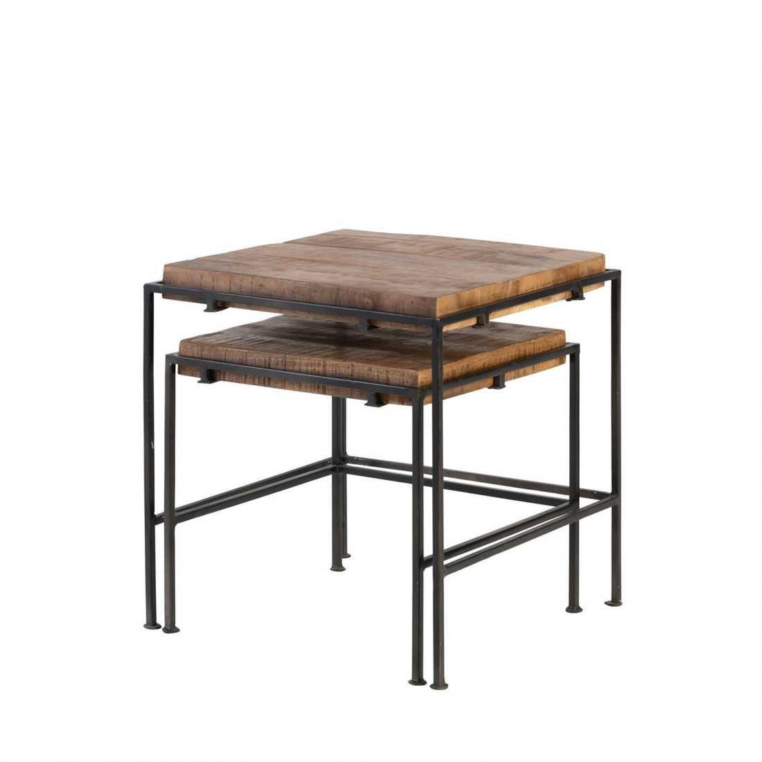 El set de mesas de centro ZAID aporta un toque rústico y contemporáneo con su diseño que combina materiales naturales y acabados industriales.