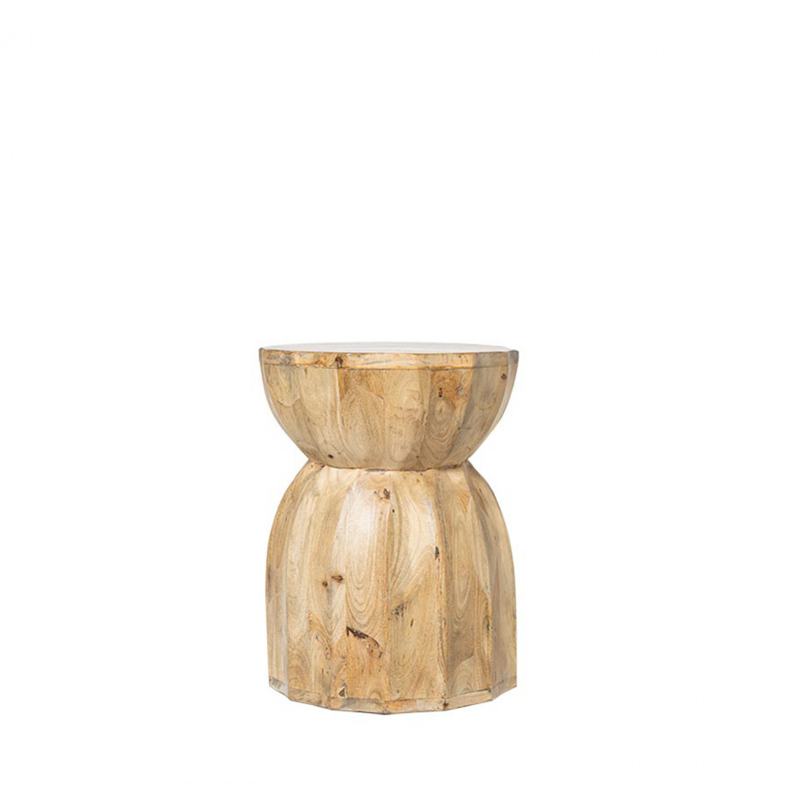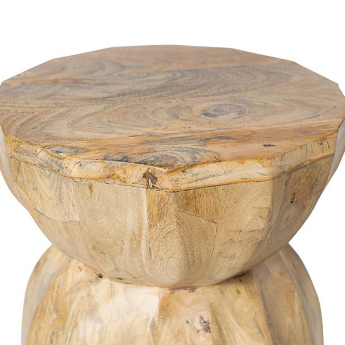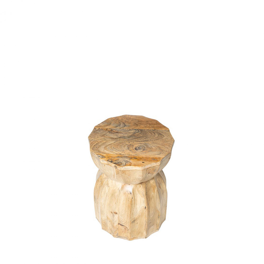 La mesa auxiliar ARJUN destaca por su esencia natural y carácter artesanal, elaborada en madera de mango con un acabado que realza las vetas y texturas propias del material.