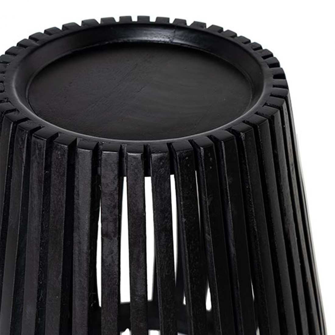 El acabado negro intensifica el impacto visual, aportando un aire sofisticado y moderno. En contraste, la superficie superior cerrada crea un área funcional que mantiene la estética minimalista sin perder su esencia práctica.