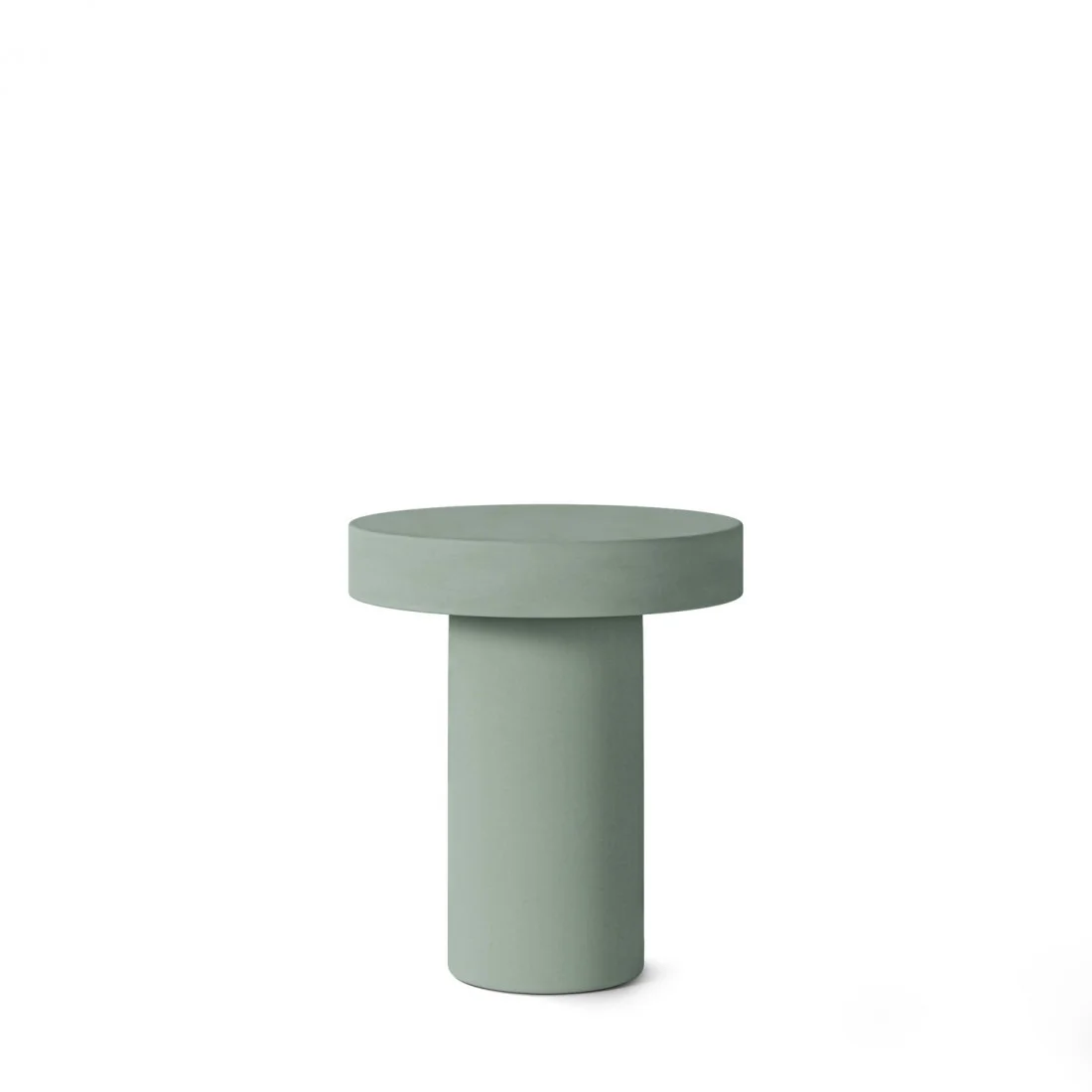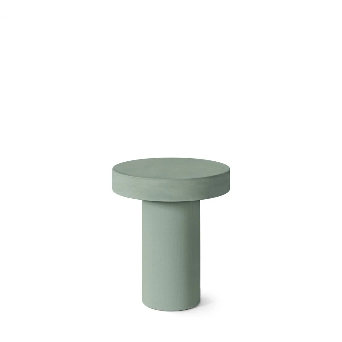Fabricada en cemento-GFRC —un material robusto, resistente y con gran presencia visual—, mantiene su forma cilíndrica rotunda y una tapa gruesa de 8 cm, que refuerza su estética sólida y sofisticada. Las sutiles variaciones tonales y porosidad propia del material intensifican su carácter artesanal, convirtiendo cada unidad en una pieza única.