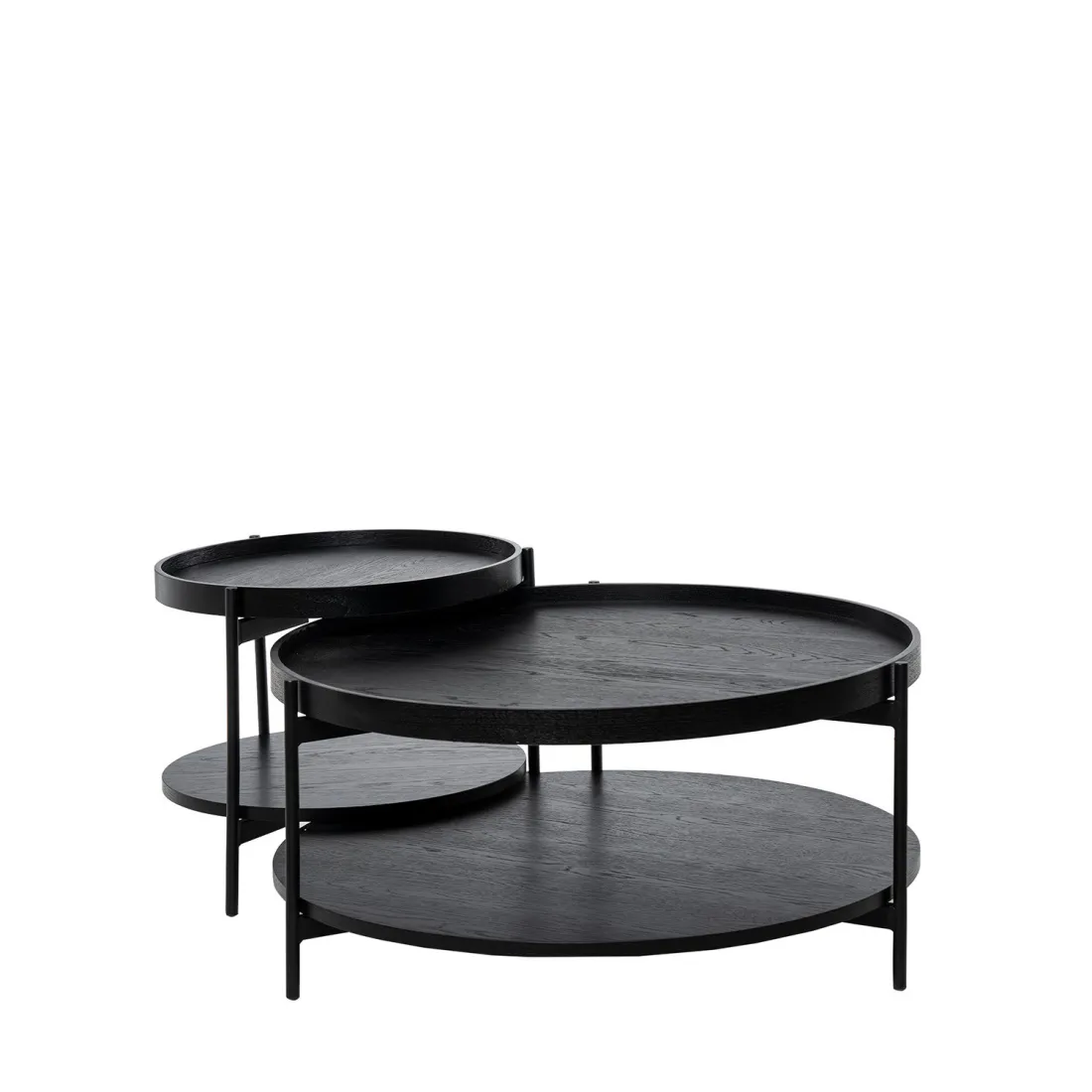 El set de mesas auxiliares VISHAL es ideal para espacios contemporáneos o industriales, donde el diseño versátil y el arte decorativo se fusionan en un conjunto único.