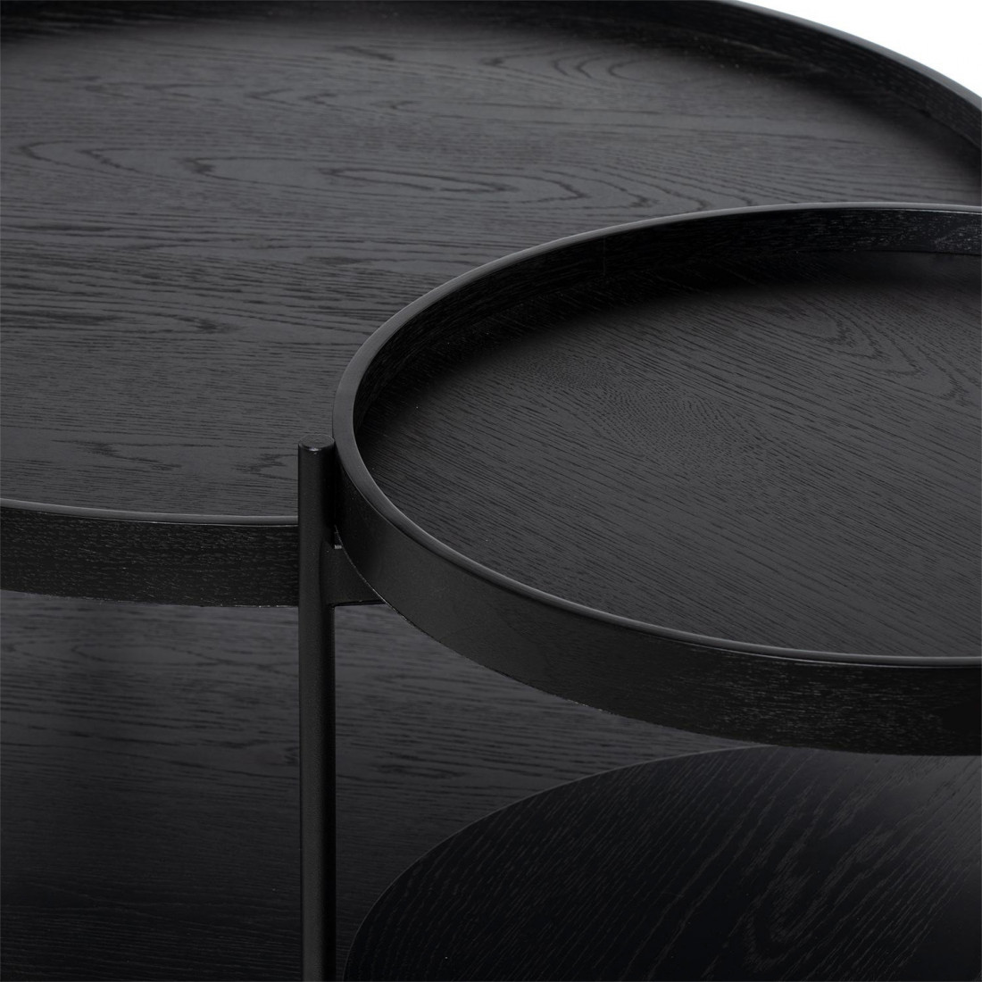 La mesa de centro ADRIAN es una pieza sofisticada que combina minimalismo y modernidad en un diseño elegante. Su tablero circular, elaborado en MDF con un fino acabado en chapa de roble lacado en negro, aporta una estética refinada y atemporal, perfecta para cualquier espacio contemporáneo.