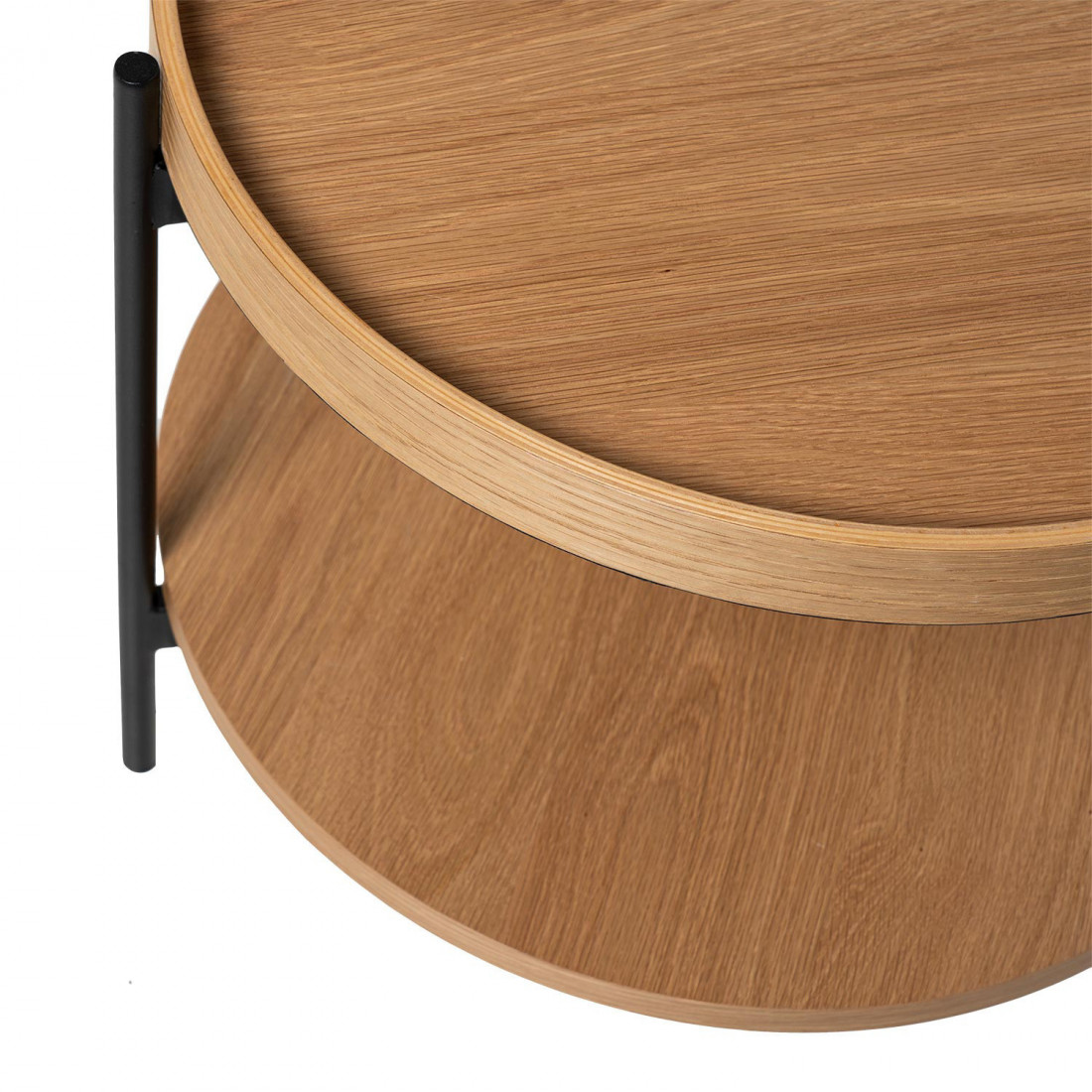 La mesa de centro ADRIAN es una pieza sofisticada que combina minimalismo y modernidad en un diseño elegante. Su tablero circular, elaborado en MDF con un fino acabado en chapa de roble, aporta una estética refinada y atemporal, perfecta para cualquier espacio contemporáneo.