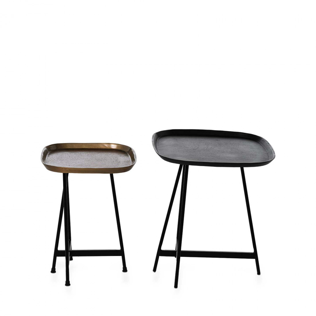 El set de mesas auxiliares AMIR destaca por su diseño artesanal y carácter único, aportando un toque distintivo a cualquier ambiente. Cada mesa está compuesta por una tapa de aluminio cuidadosamente trabajada, lo que le otorga una estética elegante y contemporánea, con sutiles imperfecciones que reflejan el proceso artesanal de su fabricación.