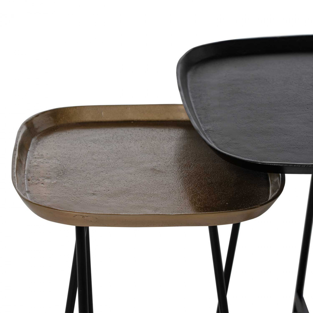 El set de mesas auxiliares RAHUL es un conjunto de dos mesas que destacan por su diseño versátil y elegante, ideal para complementar la decoración de cualquier salón con un toque sofisticado.