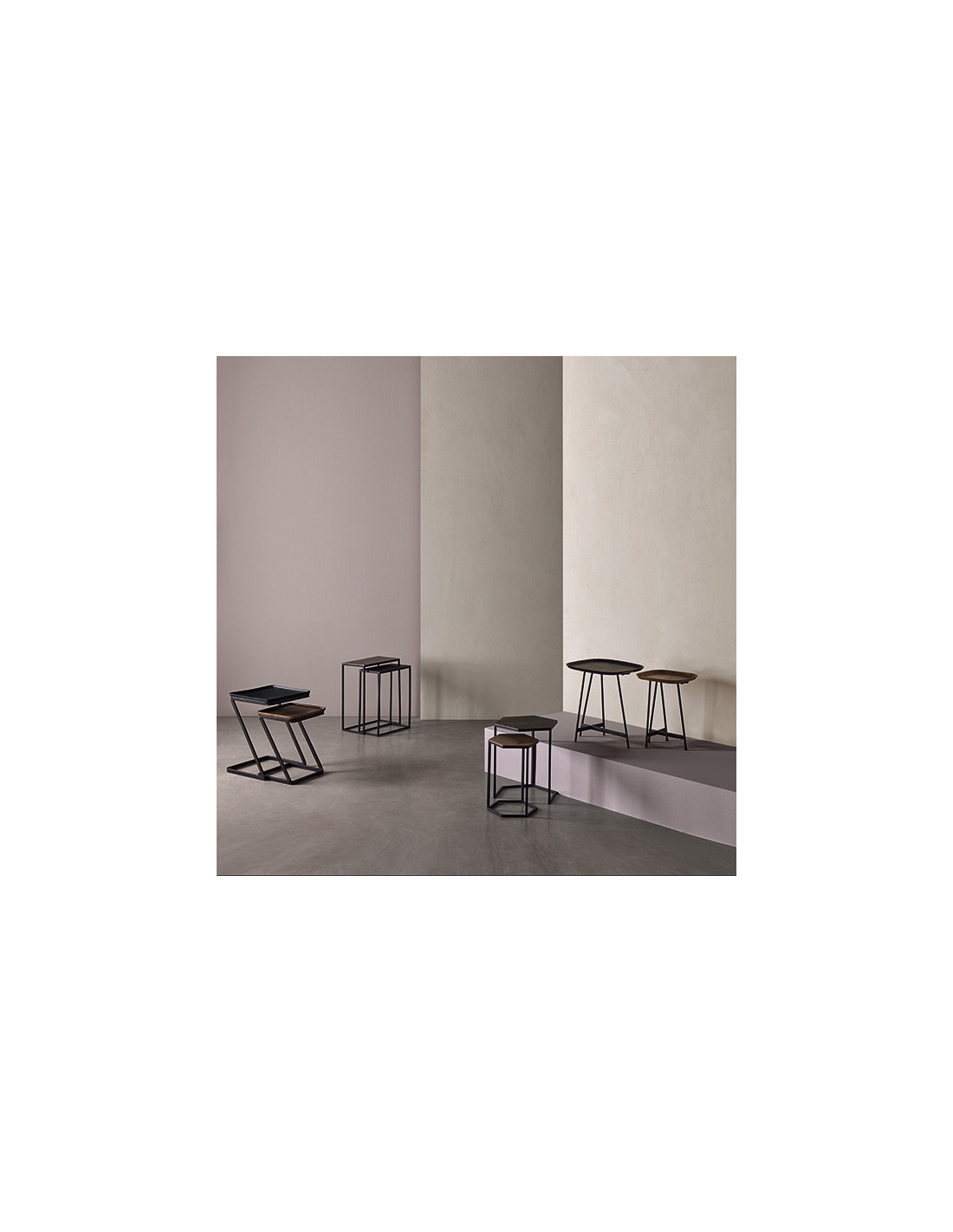 El set de mesas auxiliares RUNSHIL destaca por su diseño hexagonal lleno de estilo. Las tapas, realizadas en aluminio, presentan un acabado sutilmente texturizado que aporta un toque sofisticado y contemporáneo.