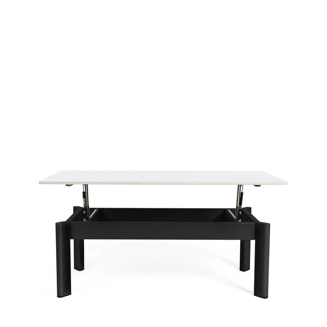 La mesa de centro elevable ROLAND combina funcionalidad y estilo con una estética contemporánea que se adapta con facilidad a distintos tipos de interior. Su tapa de porcelánico de 12 mm está disponible en cuatro elegantes acabados —travertino, blanco, negro y gris—, permitiendo múltiples combinaciones decorativas. Cada opción se complementa con una estructura metálica robusta: en color negro para la mayoría de versiones, o en beige para el modelo travertino, aportando un toque más cálido y natural.