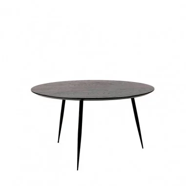 Su superficie está realizada en chapa de roble tintada, donde las vetas naturales quedan sutilmente visibles bajo el acabado oscuro, aportando calidez y un toque orgánico al conjunto.