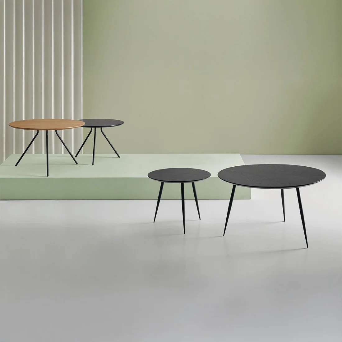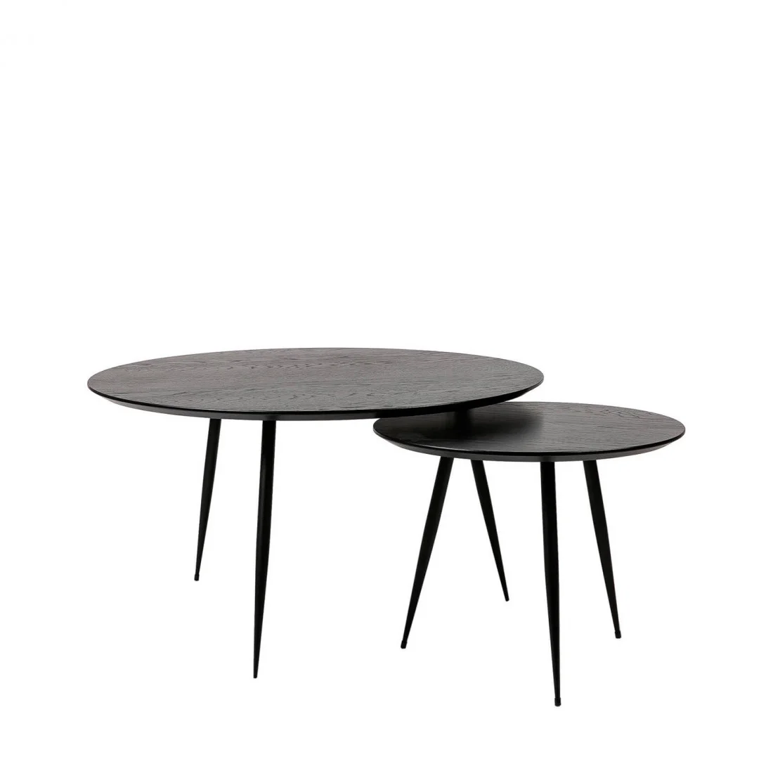 El set de mesas de centro ADRIANO combina a la perfección la calidez de la chapa de roble con la firmeza del metal (disponible en negro y en blanco), creando un contraste visual que añade carácter a cualquier estancia.