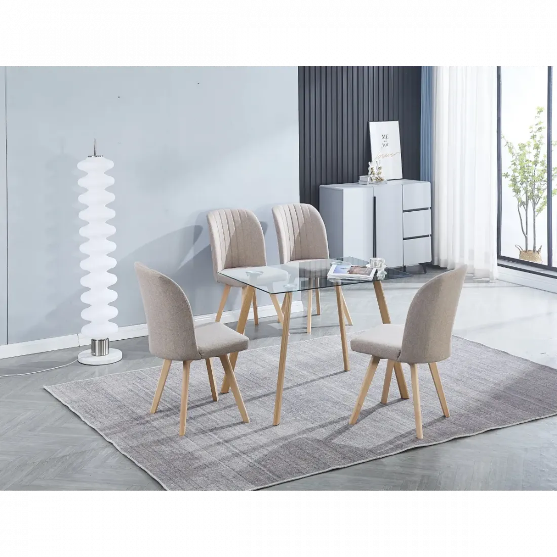 MESA COCINA EXTENSIBLE TAPA IMPRESA FLORES GRIS