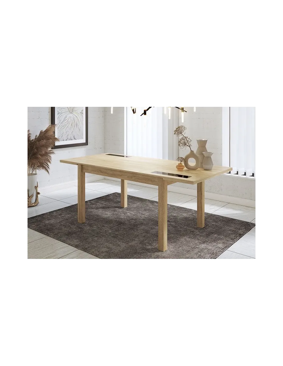 MESA EXTENSIBLE 140CM CRISTAL NEGRO LARA BLANCO O CAMBRIA