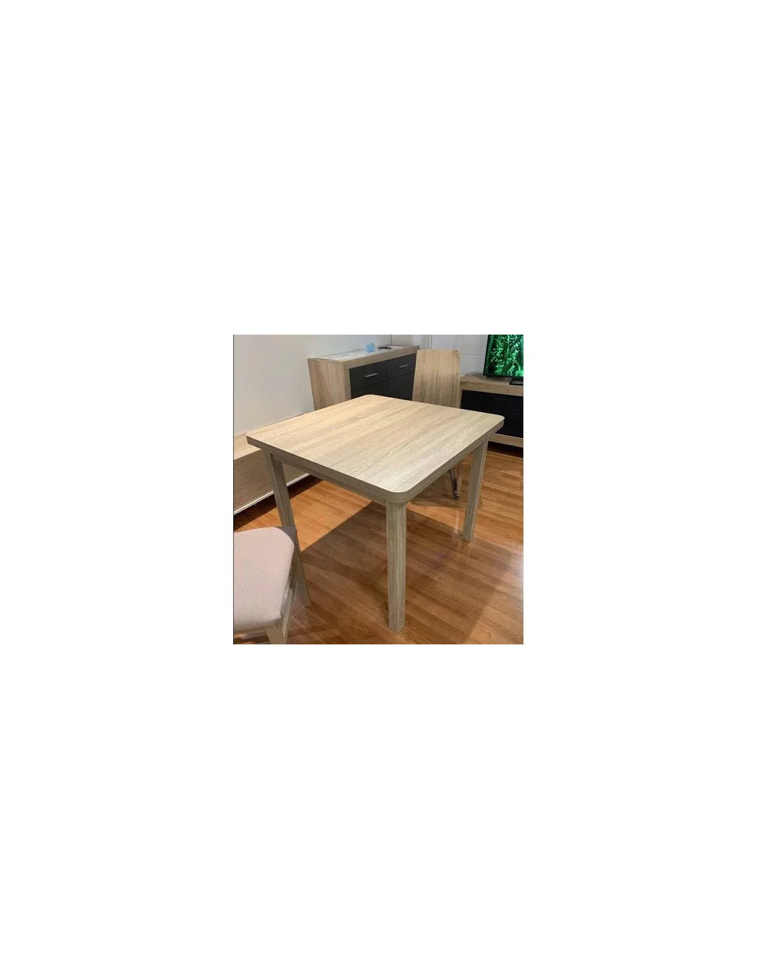 Es una mesa robusta, de fácil limpieza y fabricada en melamina anti rallado. Viene con los cantos redondeados para evitar incidentes indeseados.