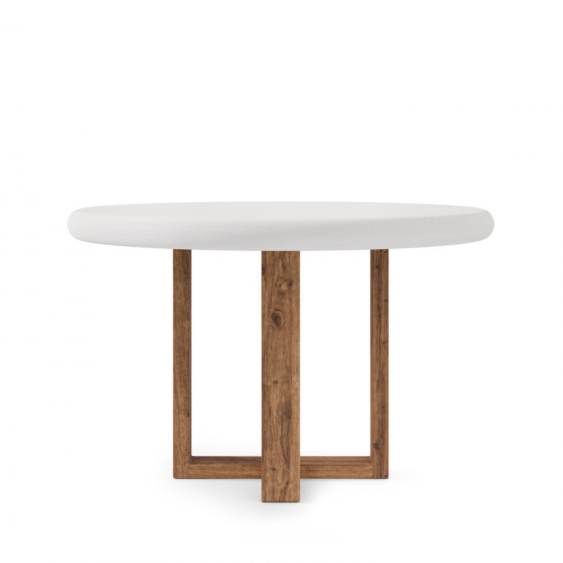 Su tapa de cemento-GFRC blanco (reforzado con fibra de vidrio) ofrece una textura suave y moderna, con un acabado resistente y fácil de mantener, ideal para el uso diario. Este material aporta un toque industrial sutil, que contrasta armoniosamente con la calidez de la base.