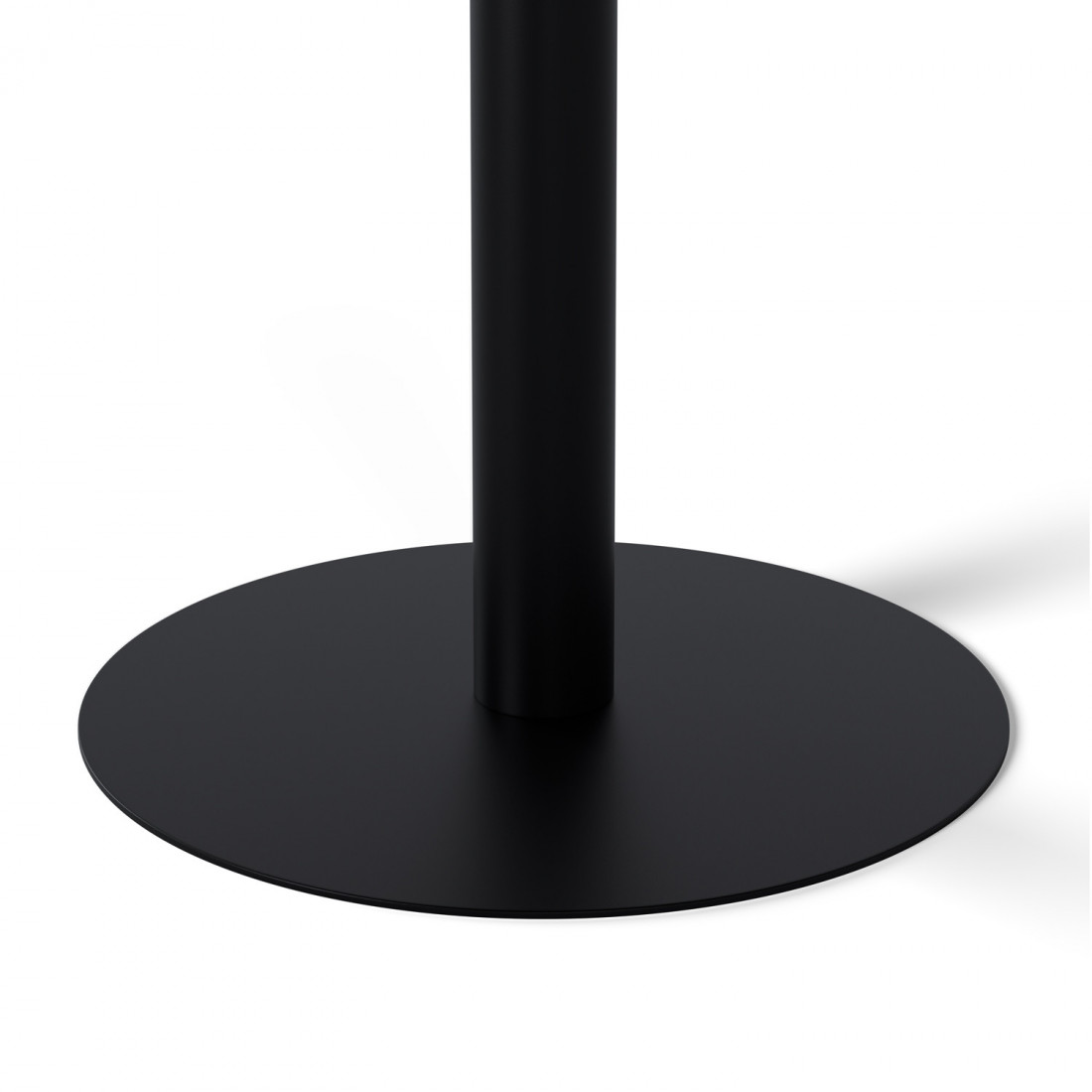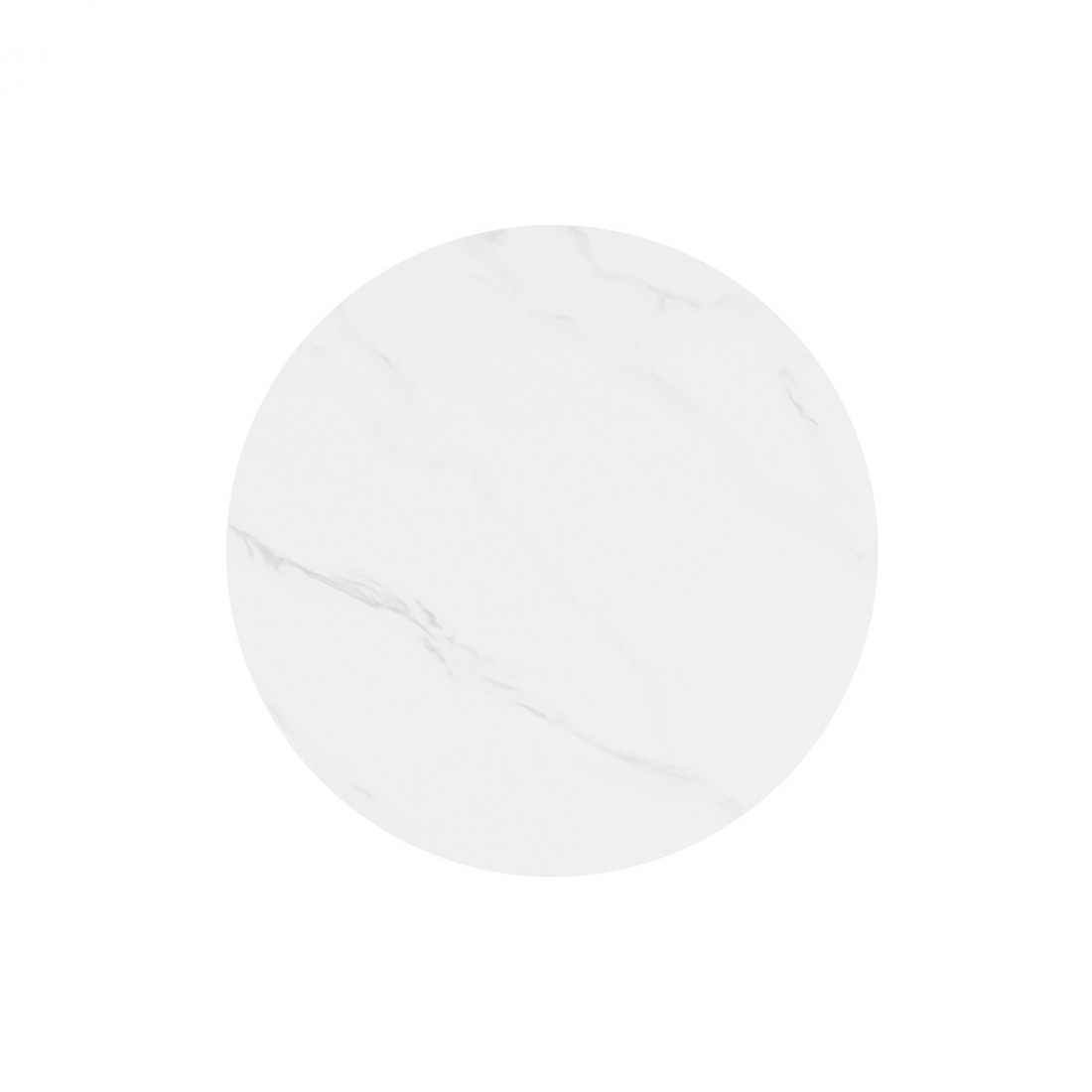 Su tapa redonda de porcelánico, de 70 cm de diámetro y 12 mm de grosor, está disponible en tres tonos neutros —blanco, negro y gris— que realzan su carácter sobrio y atemporal.