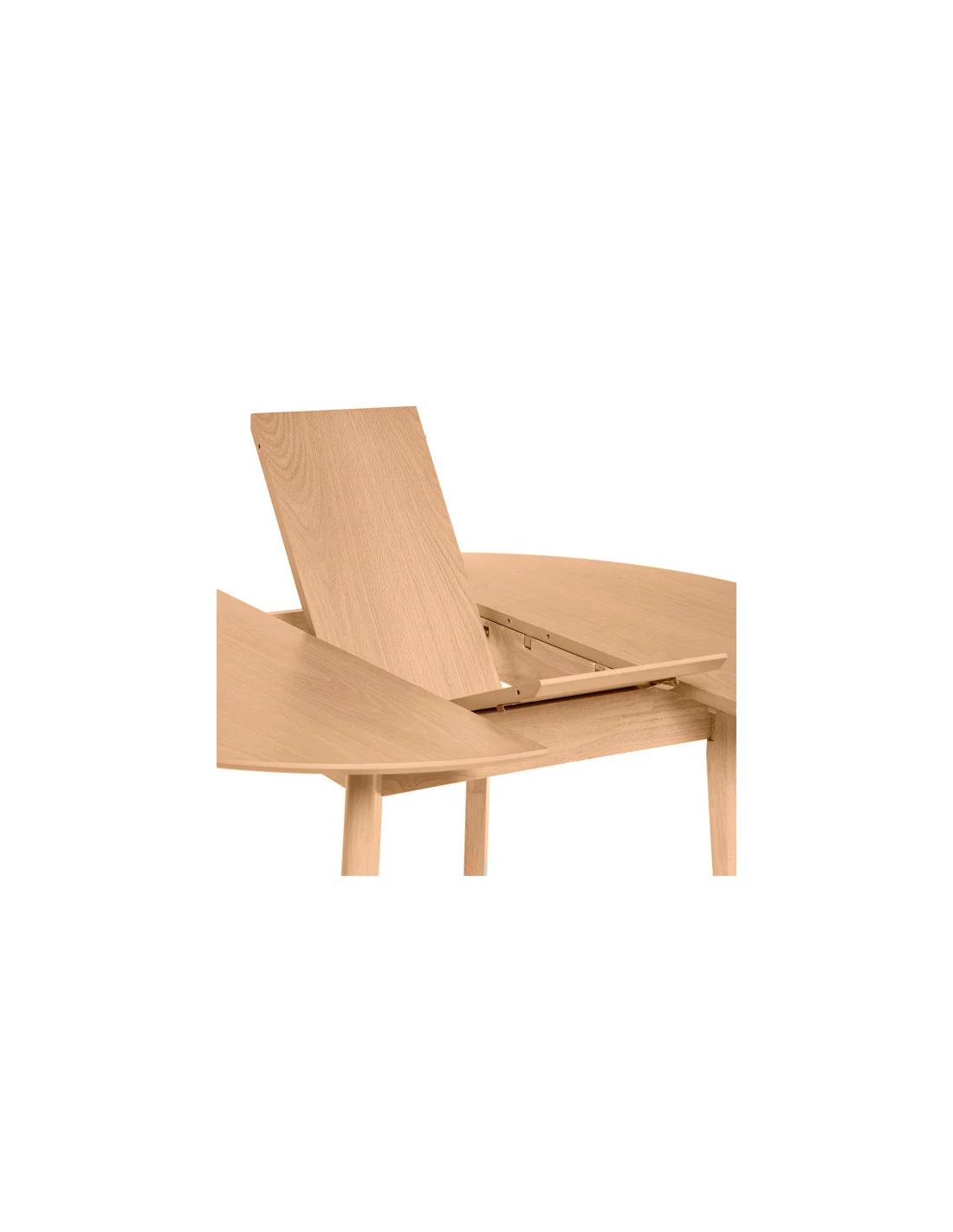 La mesa extensible LIANA 100 en acabado roble combina funcionalidad inteligente con una estética cálida y atemporal. Su tapa redonda de Ø100 cm, fabricada en chapa de roble de 2 cm de grosor, exhibe un veteado natural que añade profundidad y textura, mientras que su sistema extensible central permite ampliarla hasta Ø130 cm, ideal para esos momentos en los que se necesita espacio extra sin renunciar al estilo.