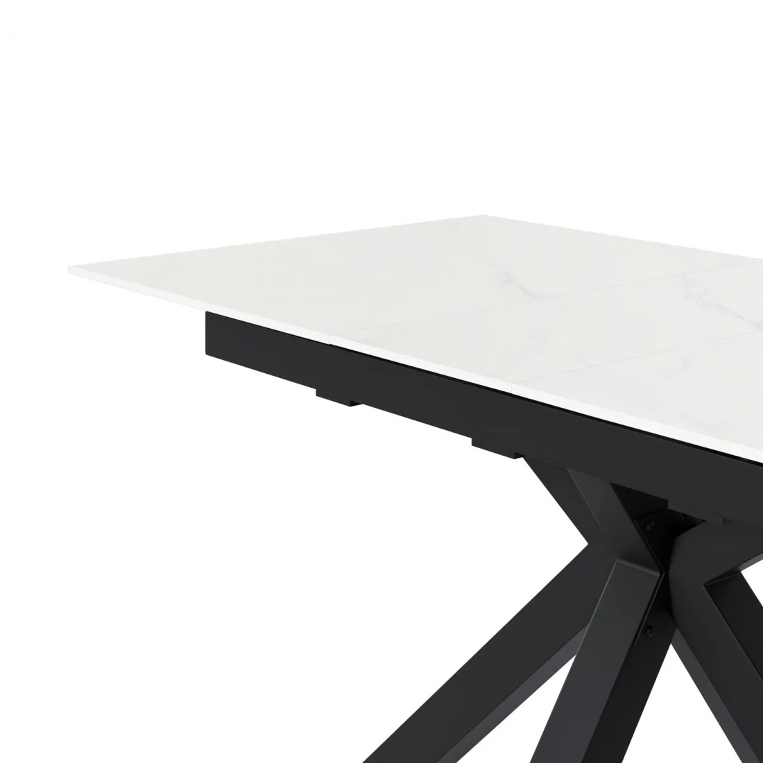 El diseño de la mesa LORI presenta una forma rectangular, práctica y fácil de encajar en diversos espacios, acompañada de patas en forma de 'x' que aportan diseño y estabilidad. Además, su sistema extensible permite ampliar la superficie en 30 cm, ofreciendo la flexibilidad necesaria para adaptarse a diferentes ocasiones, desde reuniones íntimas hasta encuentros más numerosos.