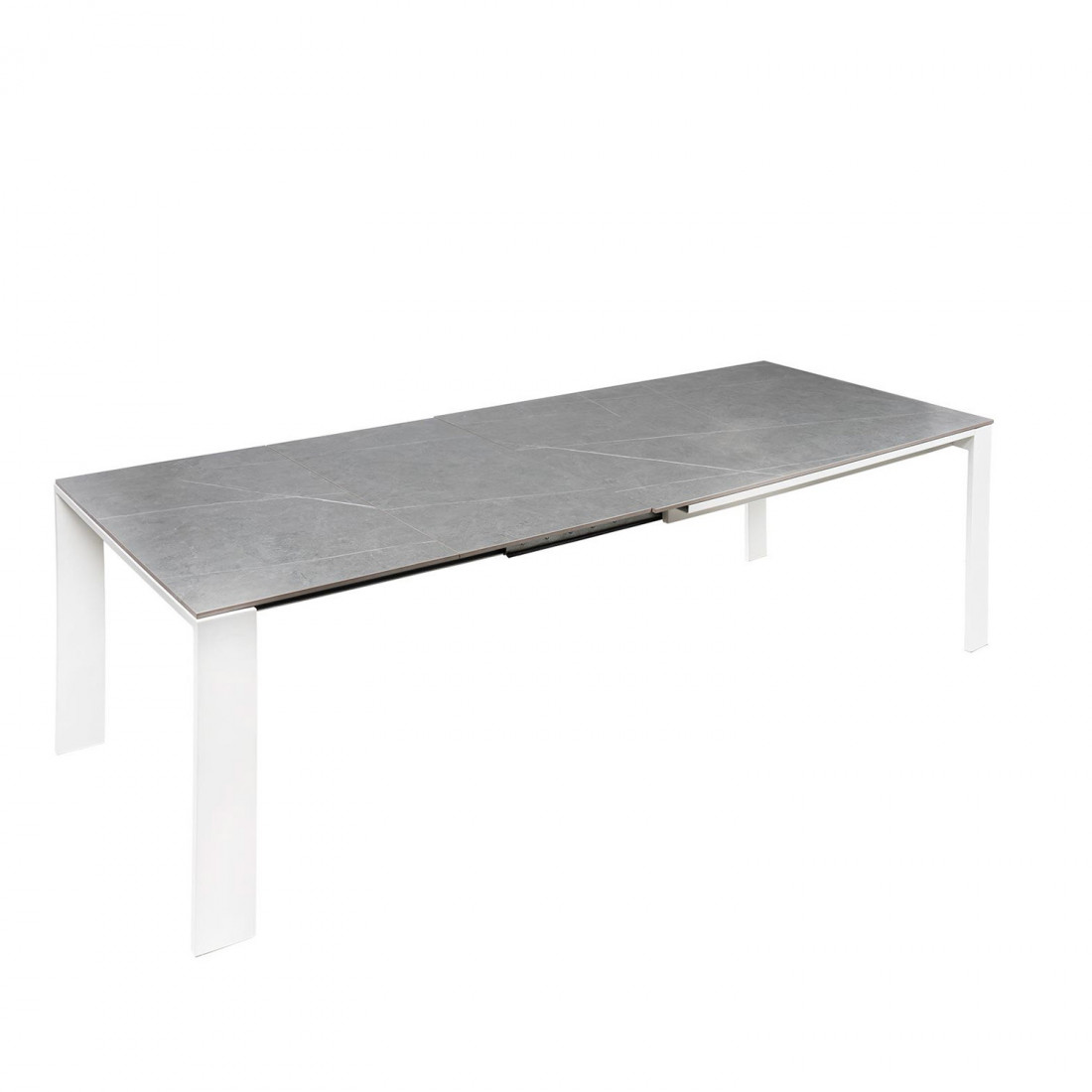 La tapa de porcelánico de 10 mm, disponible en tonos blanco, gris o negro, aporta una estética refinada y una resistencia superior al uso diario, al calor y a los arañazos. Sus patas metálicas, completan una silueta moderna y minimalista que encaja tanto en ambientes contemporáneos como en espacios más sobrios.