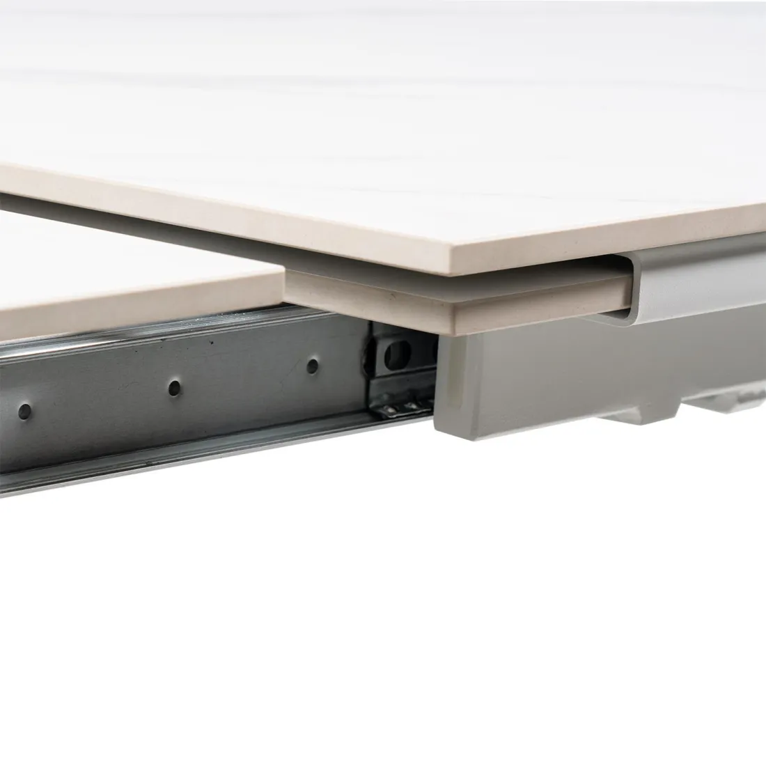 La mesa TAMARA es una expresión de diseño elegante y funcionalidad inteligente. Su tapa porcelánica de 12 mm, resistente y sofisticada, está disponible en tres tonalidades —blanco, gris y negro—, lo que permite adaptarla fácilmente a distintos estilos decorativos, desde los más minimalistas hasta los más modernos.