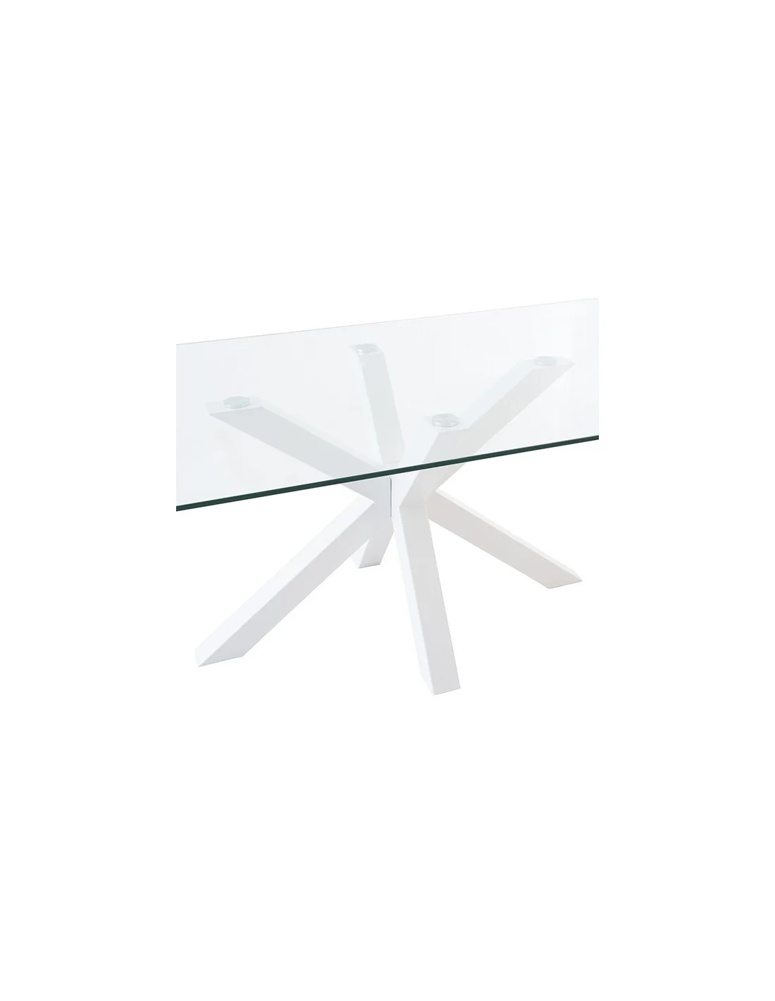 MESA DEMI 140 CRISTAL/PATAS BLANCO