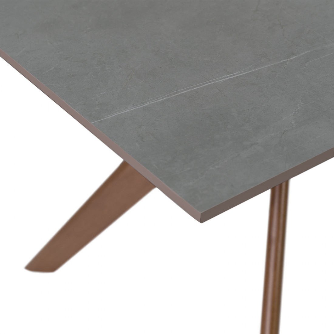 Esta mesa cuenta con una tapa porcelánica, resistente y fácil de limpiar, además de tener un acabado que imita el mármol, aportando un toque de sofisticación y lujo.
