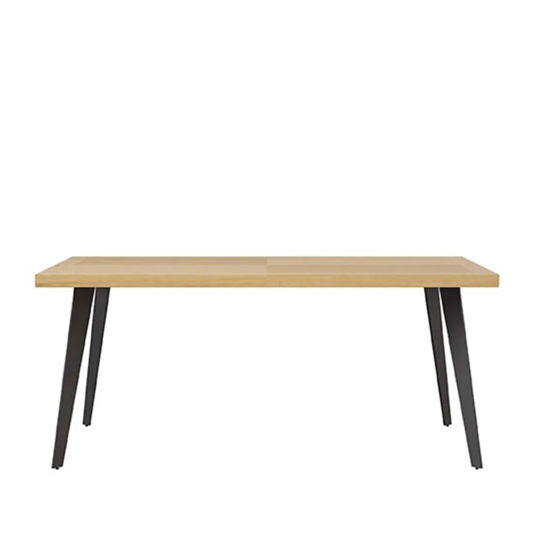 Su imponente tapa de 48 mm de grosor en chapa de roble ofrece un acabado natural y sofisticado, con vetas que aportan textura y calidez al espacio. El tono roble combinado con patas de metal negro genera un contraste elegante, ideal para ambientes contemporáneos o industriales.
