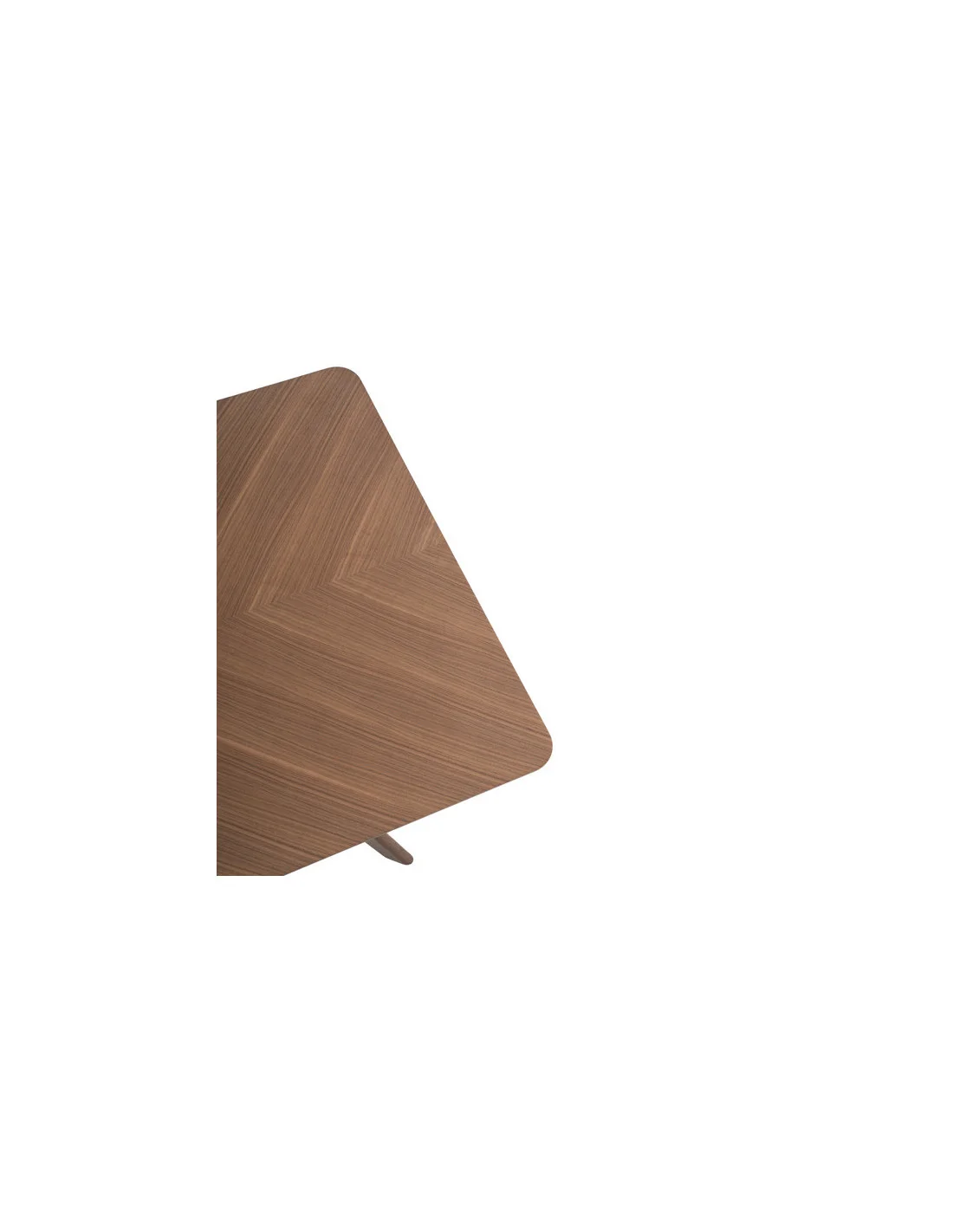 Esta mesa de madera rectangular, con dimensiones de 140x90 cm, destaca por su diseño sofisticado y elegante. Su estructura y patas están fabricadas en resistente madera de hevea, mientras que la tapa fija, de 30 mm de grosor, está acabada en un refinado tono nogal.