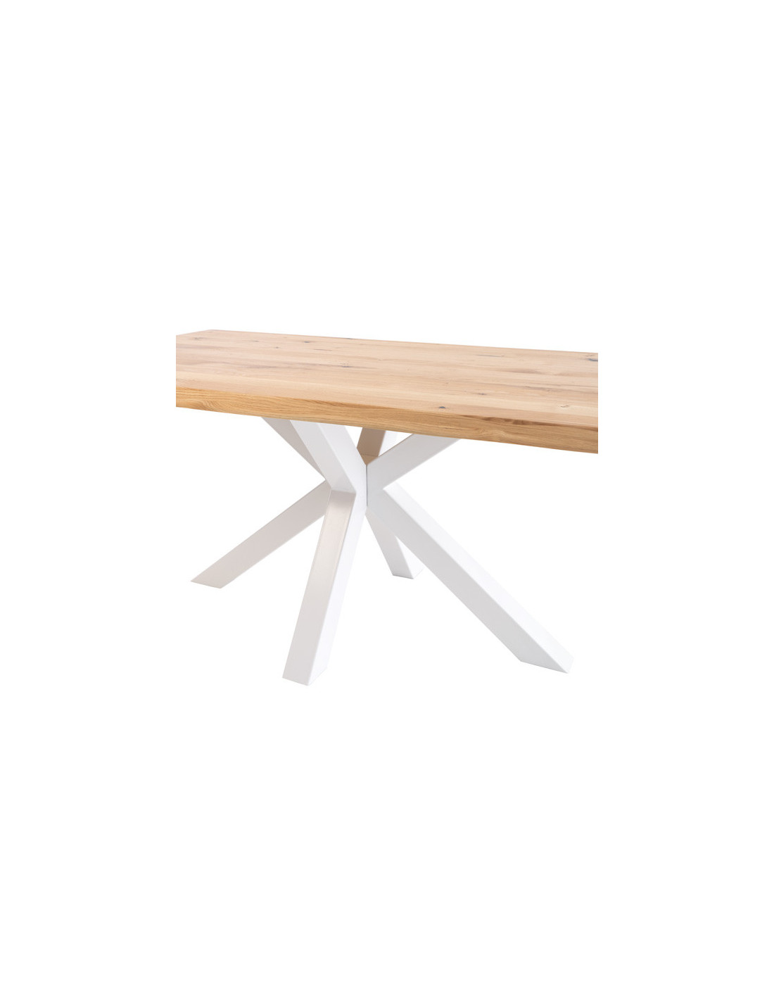 La combinación de la tapa de roble con las patas de metal confiere a la mesa GRACE un carácter único y llamativo.