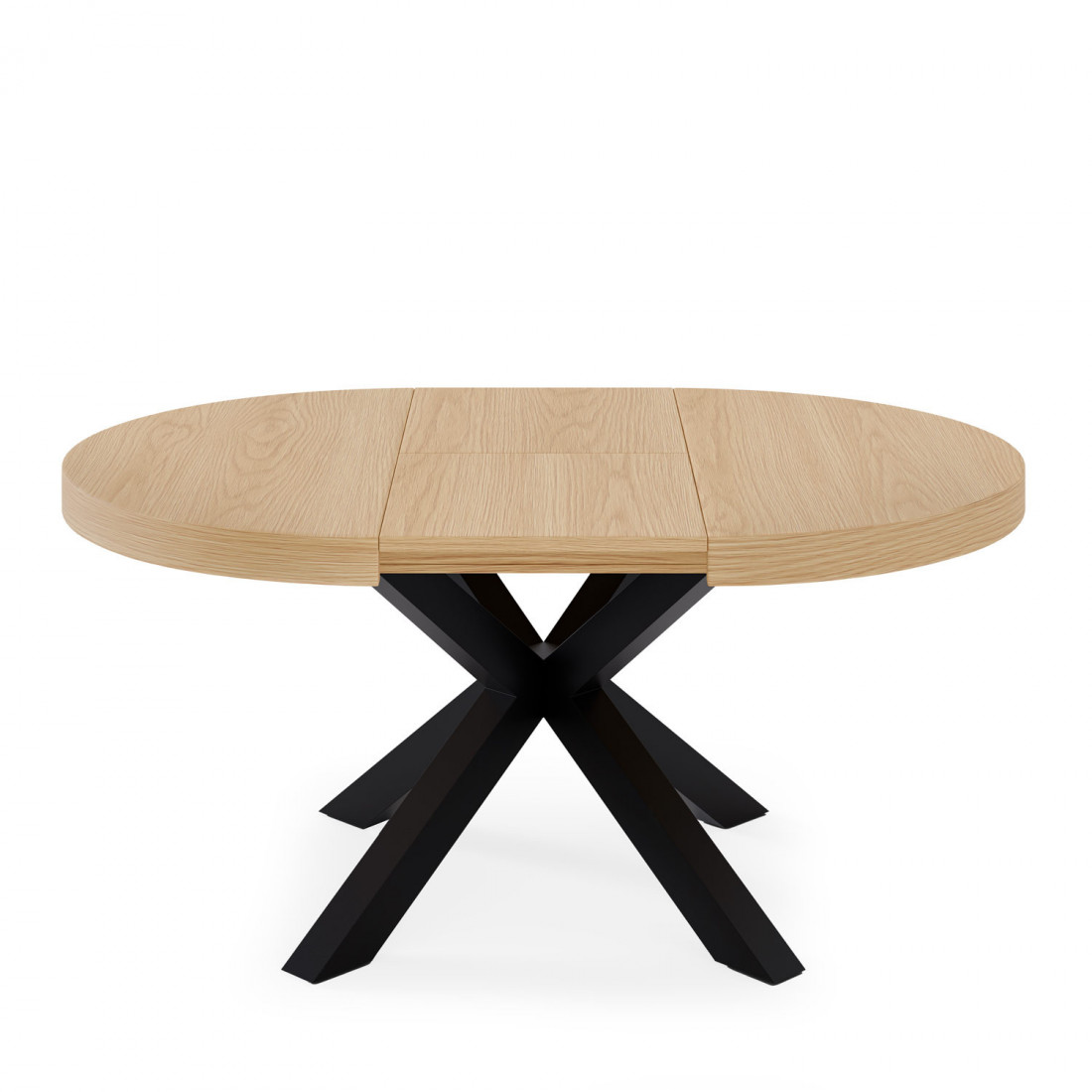 Disponible en dos tamaños —ø100 y ø120 cm—, esta mesa cuenta con un mecanismo extensible que añade 50 cm adicionales, permitiendo pasar de un formato compacto a uno más amplio con facilidad. Esta cualidad la convierte en una aliada perfecta para hogares versátiles, donde el espacio se adapta a las necesidades del momento.