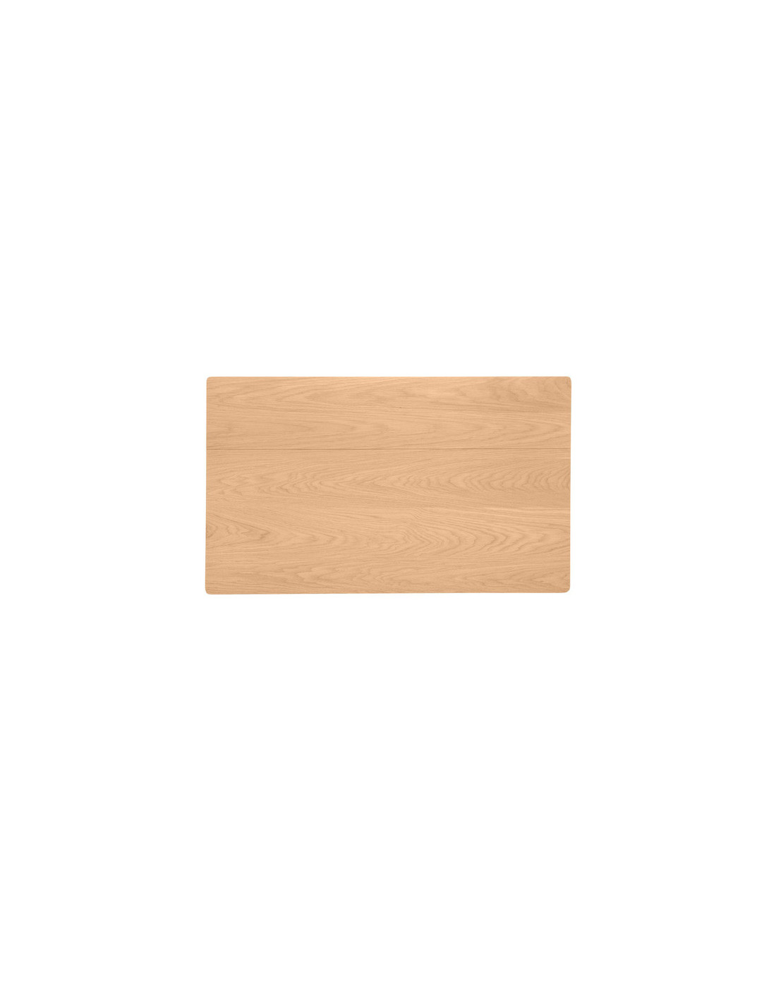 La tapa, elaborada en chapa de roble de 48 mm de grosor, se combina de manera armoniosa con una estructura de patas de metal en color blanco. Este conjunto no solo aporta un aspecto cálido y natural, sino que también se adapta perfectamente a una variedad de estilos de interiores.