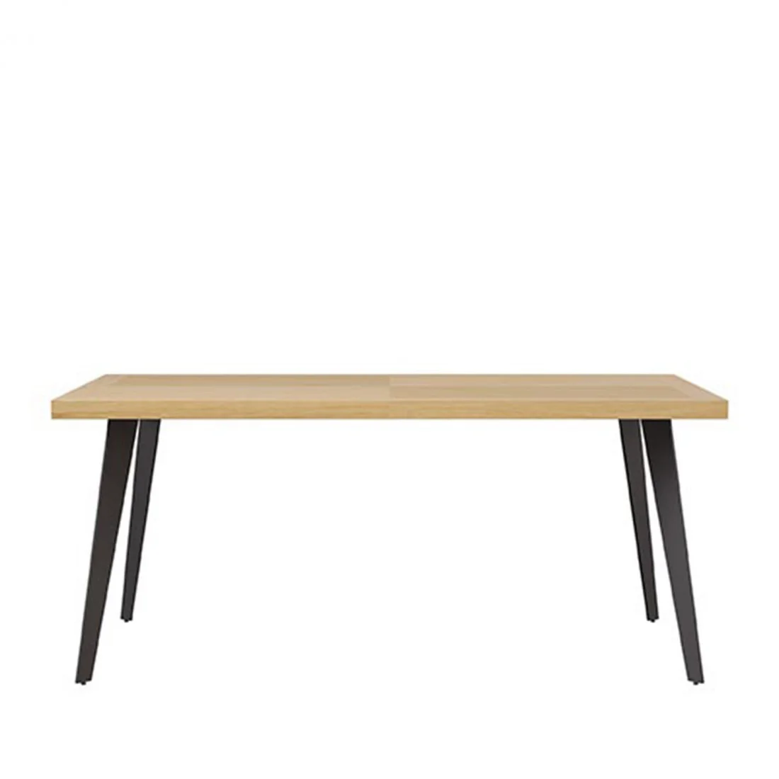 Su imponente tapa de 48 mm de grosor en chapa de roble ofrece un acabado natural y sofisticado, con vetas que aportan textura y calidez al espacio. El tono roble combinado con patas de metal negro genera un contraste elegante, ideal para ambientes contemporáneos o industriales.