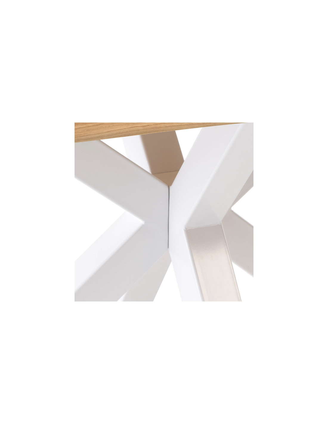 La mesa ELAINE destaca por su diseño sobrio y contemporáneo, donde la calidez de la chapa de roble se encuentra con la solidez del metal para dar vida a una pieza de fuerte personalidad.