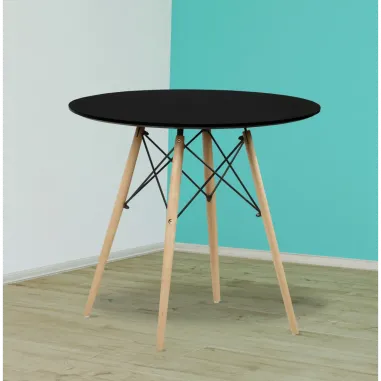 MESA REDONDA 4 PATAS MADERA DINAMARCA BLANCO o NEGRO DIÁMETRO 80 CM.