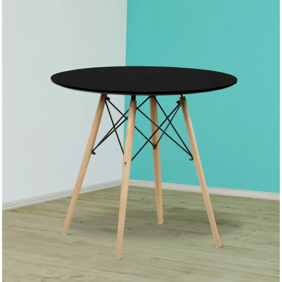 MESA REDONDA 4 PATAS MADERA DINAMARCA BLANCO o NEGRO