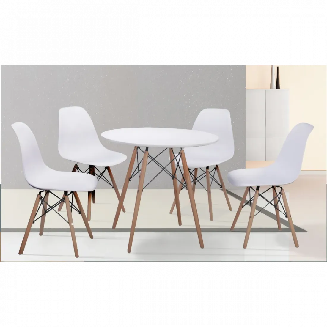 MESA REDONDA 4 PATAS MADERA DINAMARCA BLANCO o NEGRO relaxmuebles.com