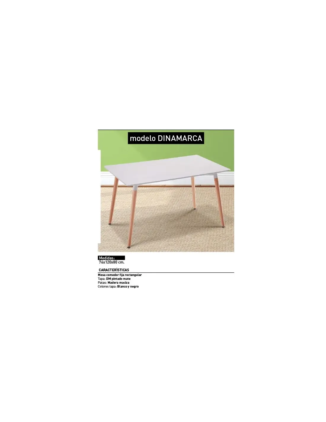 MESA RECTANGULAR 120CM PATA MADERA DINAMARCA BLANCO o NEGRO EN RELAX MUEBLES