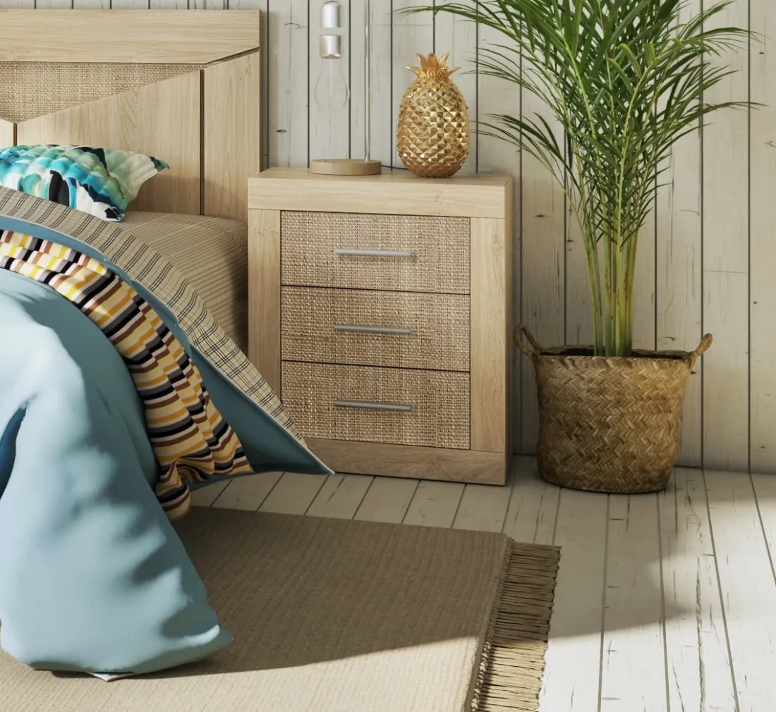 MESITA DE NOCHE 3 CAJONES PUCCINI-TEXTIL