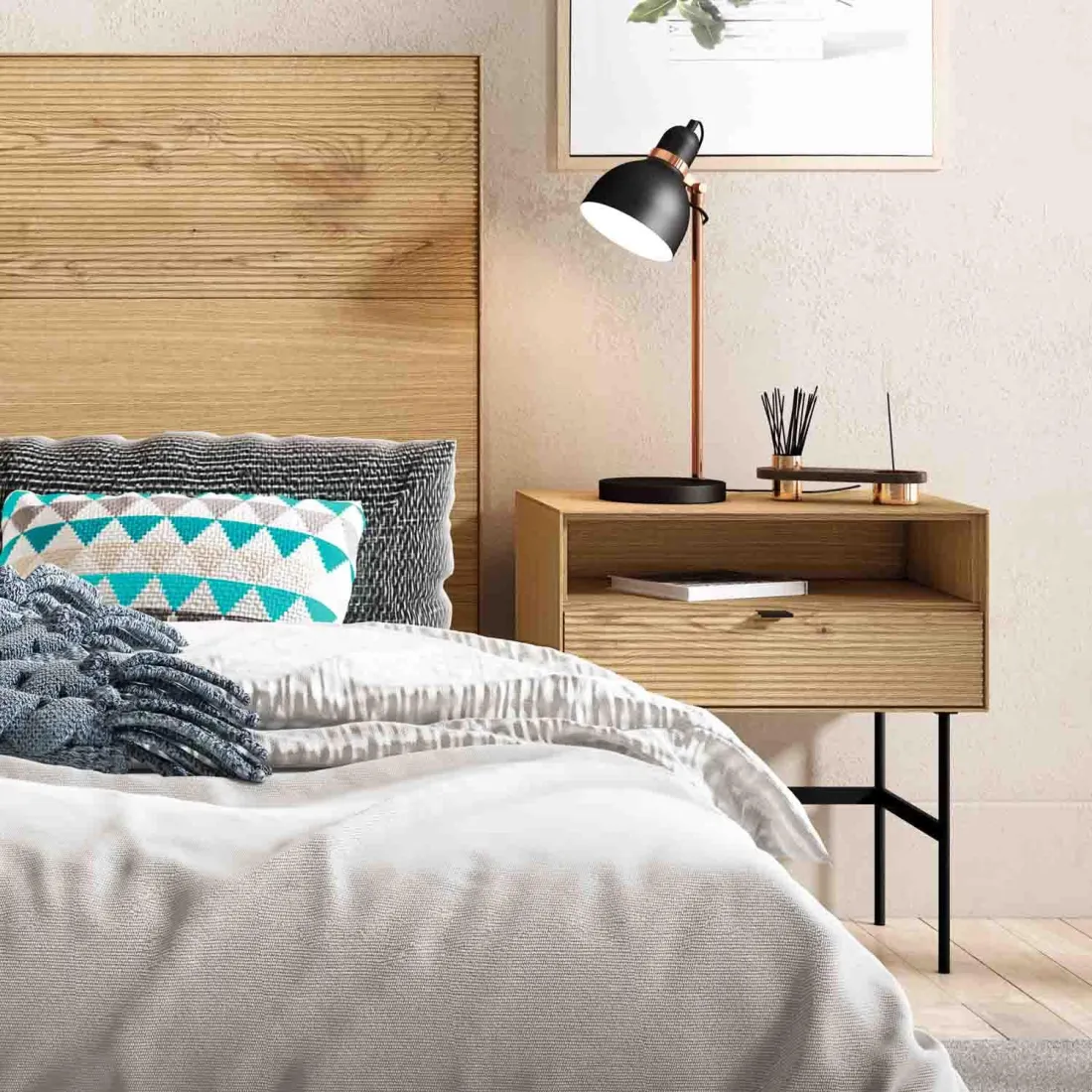 MESITA DE NOCHE 3 CAJONES MODELO RAPID ROBLE MAUVELLA-RAYAS