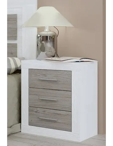Moderna mesita de tres cajones con marco perimetral ideal para ambientes actuales. Se combina a la perfección con los dormitorios de la misma serie que puede encontrar en nuestra página. Adquiera el cabecero a juego entre el extenso catálogo de la web para completar el conjunto.