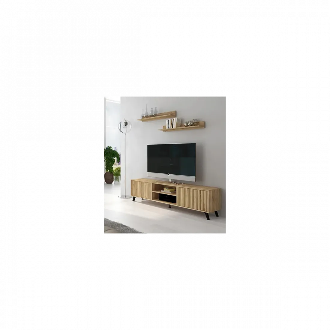 Mueble tv salón Solana con líneas contemporáneas ROBLE MAUVELLA-RAYAS