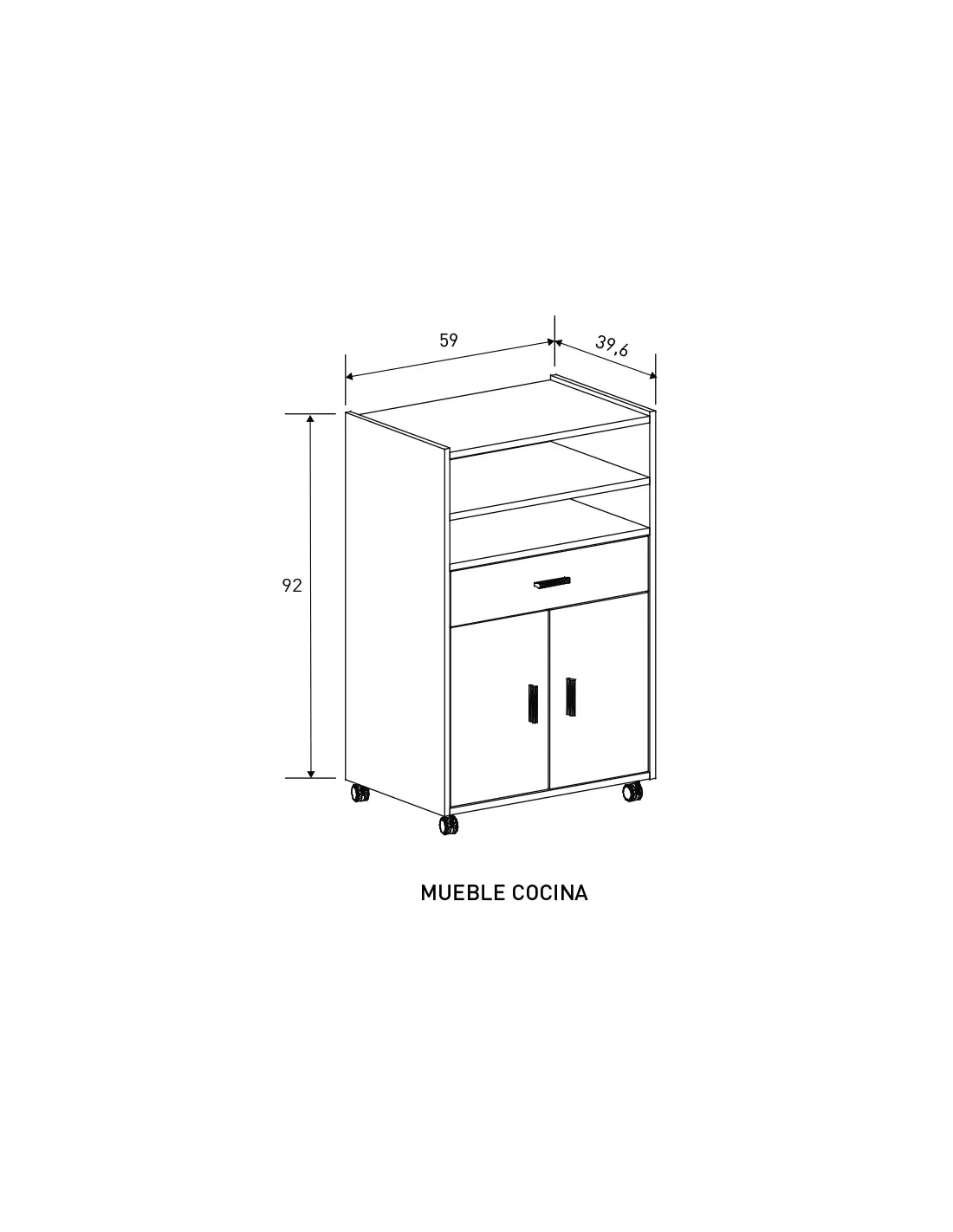 MUEBLE COCINA 2P1C2H RUEDAS MOD. AURA SERVICIO RÁPIDO RELAX MUEBLES