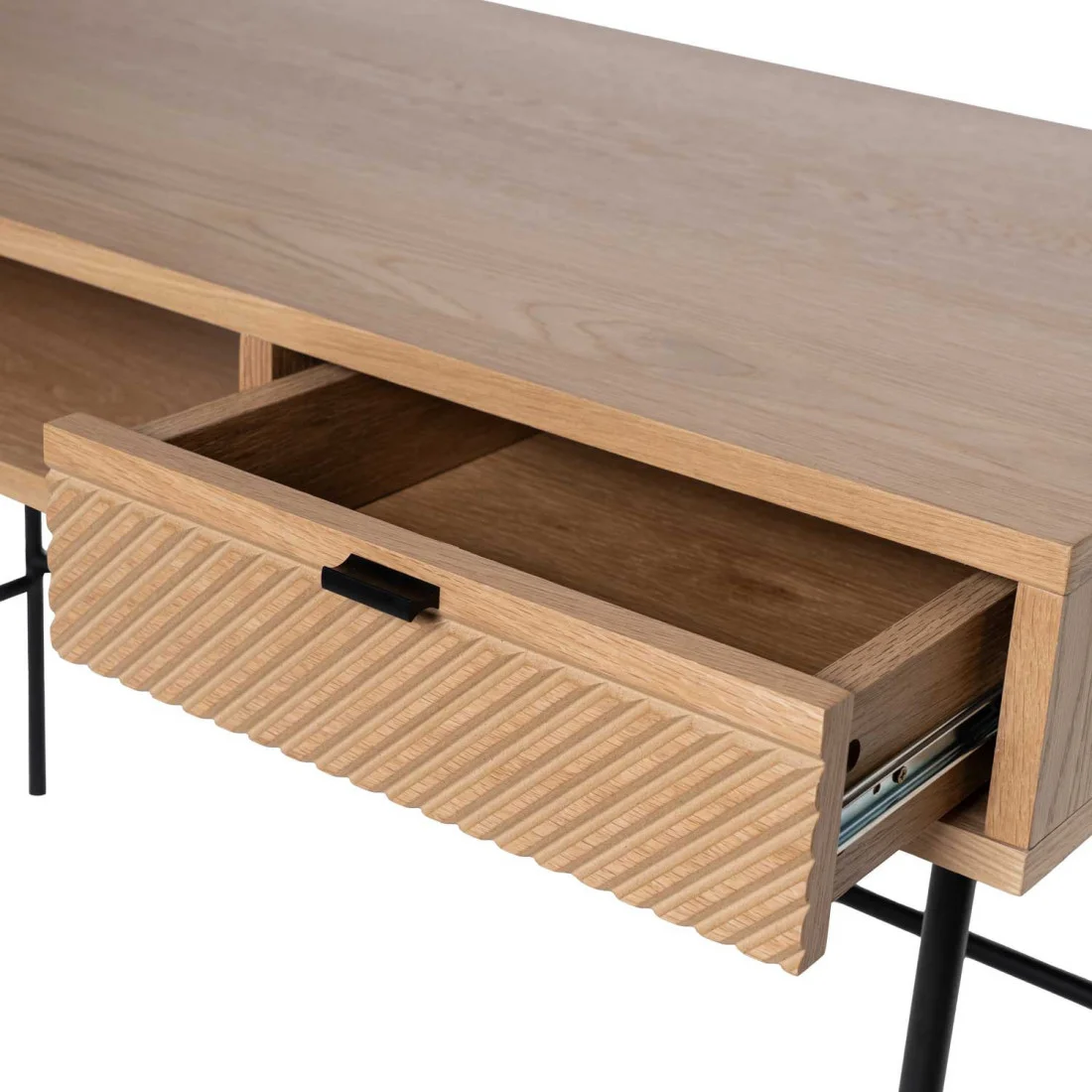 El escritorio ALABAMA ofrece una amplia superficie de trabajo, ideal tanto para tareas profesionales como creativas, asegurando comodidad y eficiencia. Además, incluye un práctico cajón integrado con hueco que optimiza el espacio, proporcionando almacenamiento adicional para mantener todos los útiles y documentos organizados y al alcance de la mano.