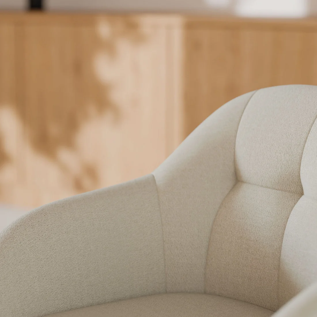Su diseño se distingue por líneas curvas y un respaldo envolvente, proporcionando un soporte excepcional para la espalda y los brazos. El tejido de alta calidad y los acabados cuidadosamente seleccionados le otorgan un aspecto sofisticado y acogedor, que se integra perfectamente en espacios con una estética contemporánea. Además, el generoso acolchado garantiza comodidad incluso en los días más exigentes.