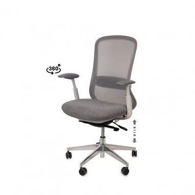 El respaldo, fabricado en tela de malla transpirable, favorece la circulación del aire para evitar la acumulación de calor, lo que garantiza un mayor confort y ayuda a reducir la fatiga incluso en jornadas prolongadas.